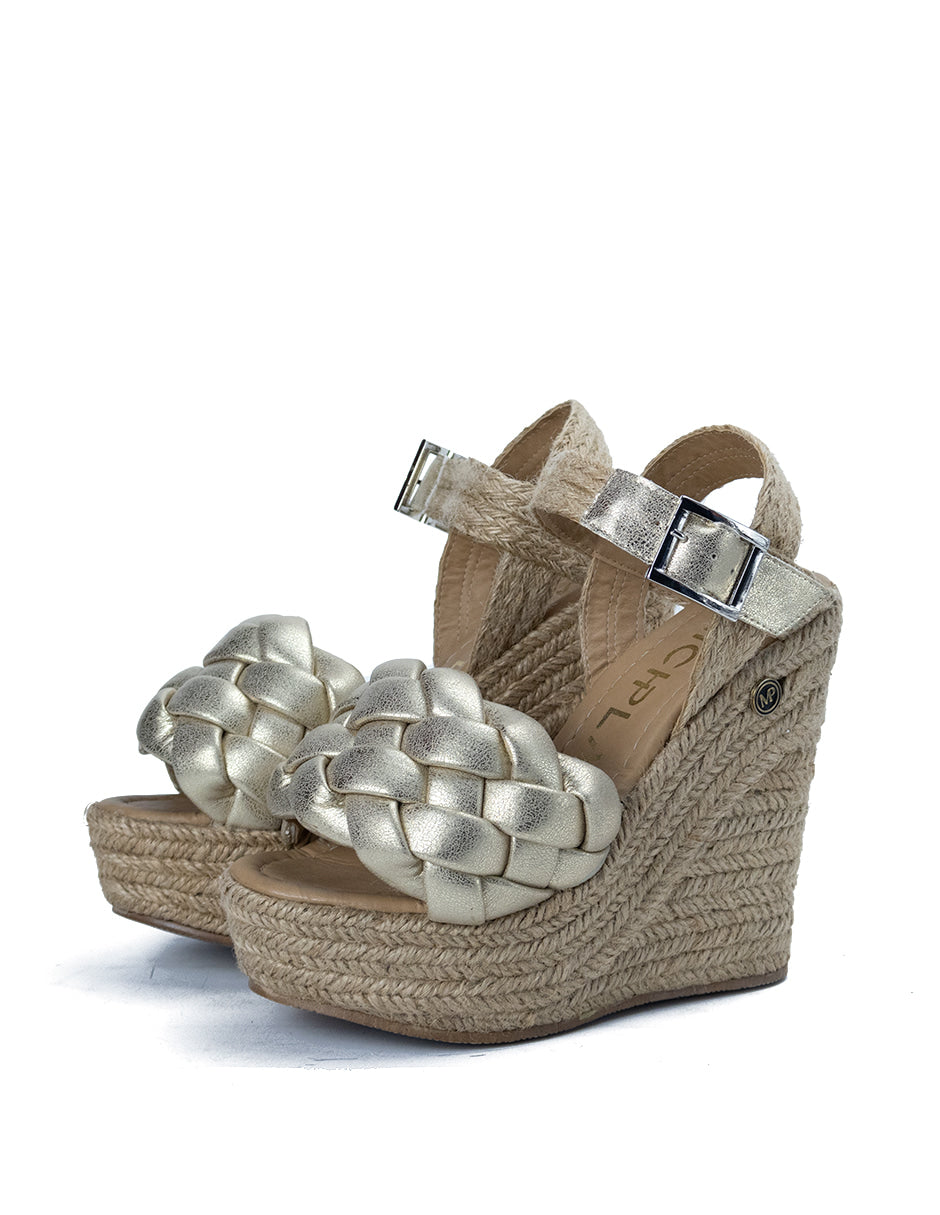 Explora la fusión perfecta entre estilo y comodidad con nuestras exclusivas alpargatas 'Barbados Dorado'. Confeccionadas con sintético de alta calidad y yute natural, estas alpargatas ofrecen una alternativa elegante para tus pies, con una altura de 13 cm que equilibra a la perfección la moda y la practicidad.