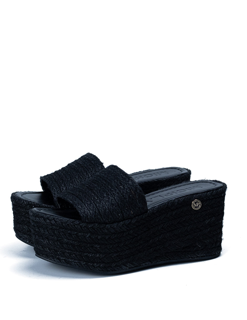 Alpargata para Mujer Plataforma Yute Negro Abierta Negro