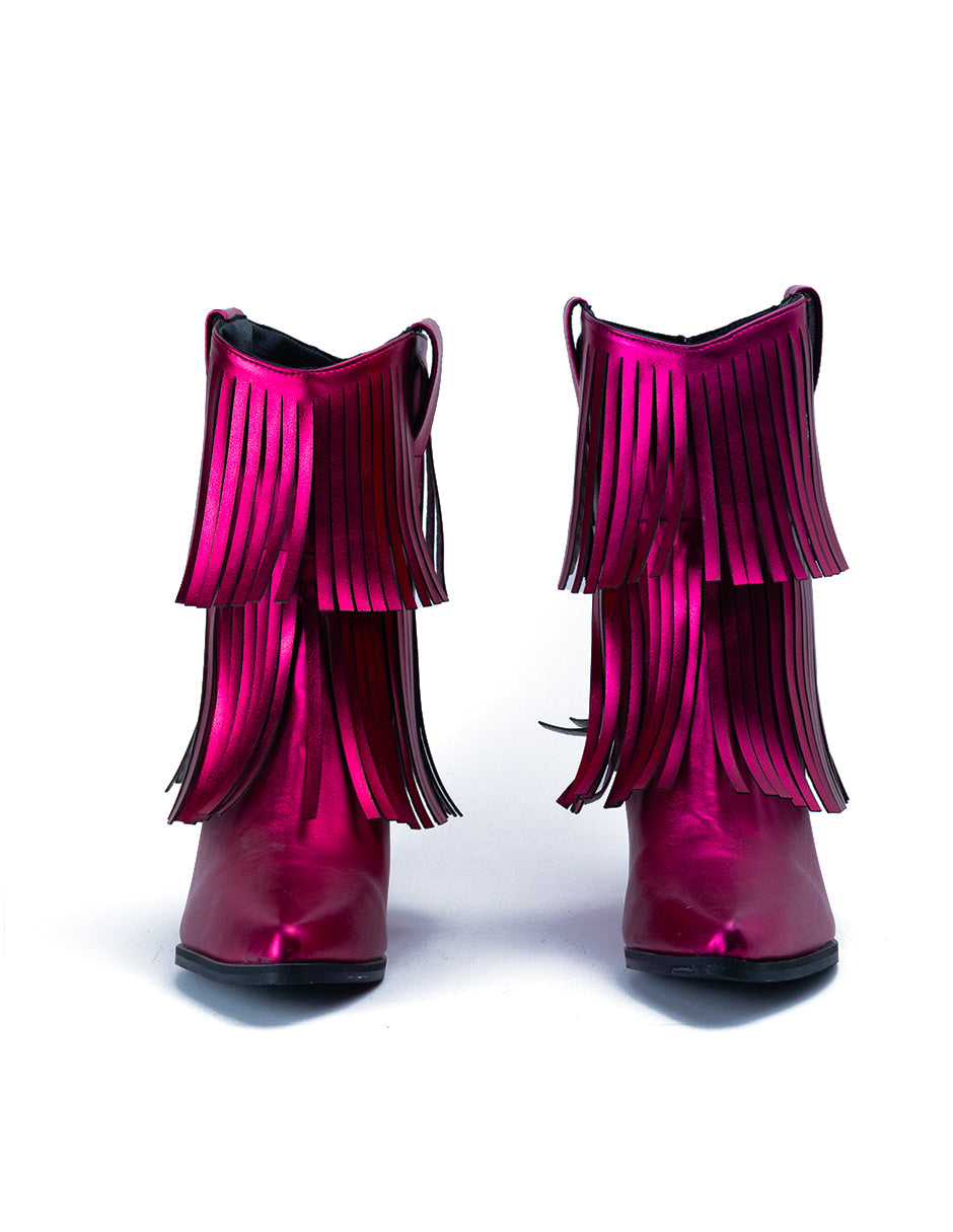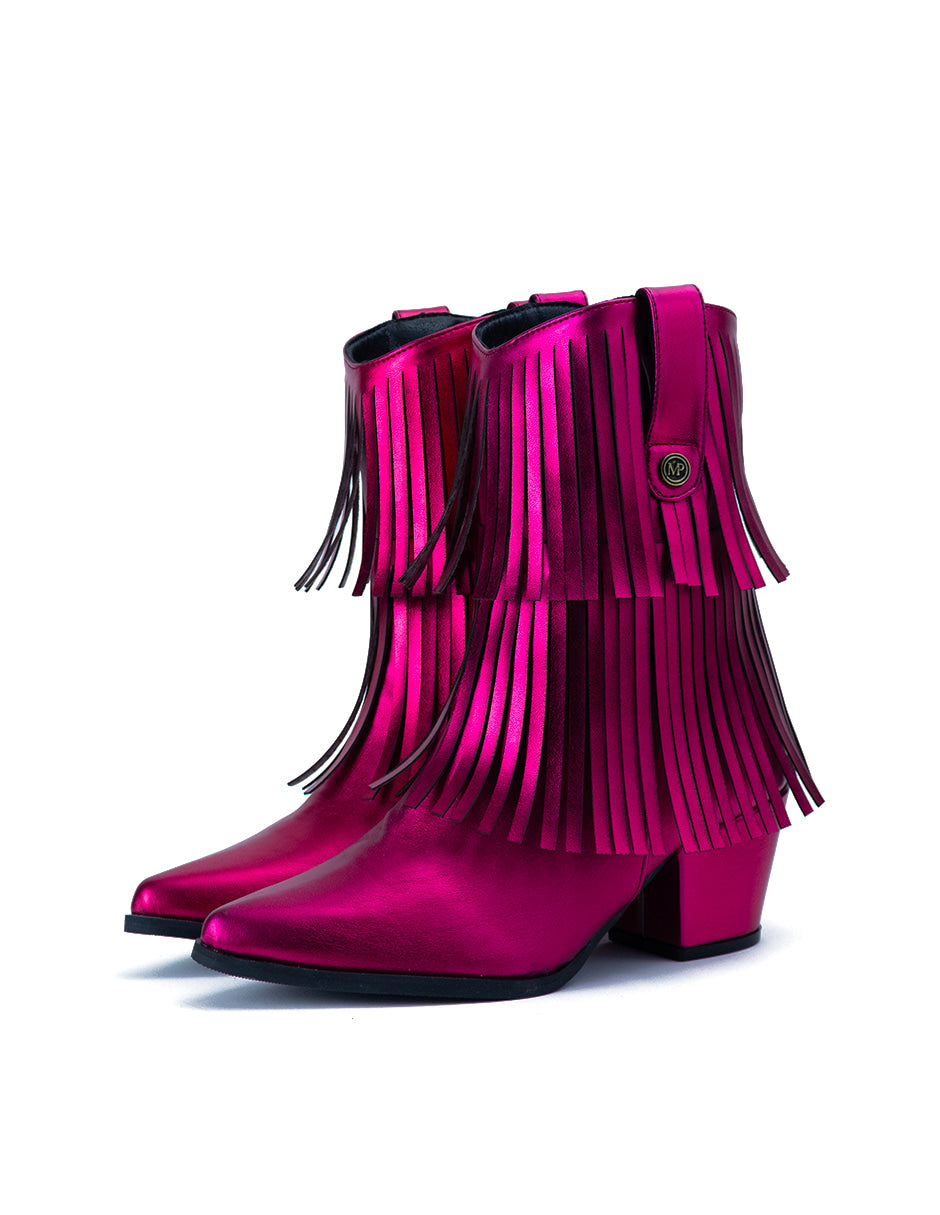 Explora el espíritu vaquero con las botas 'Cherokee B. Metálica Bugambilia'. Confeccionadas con material sintético, barbas distintivas y un tacón de 6 cm, estas botas son ideales para un público diverso que busca un estilo auténtico y duradero.