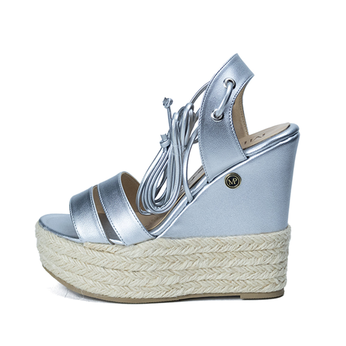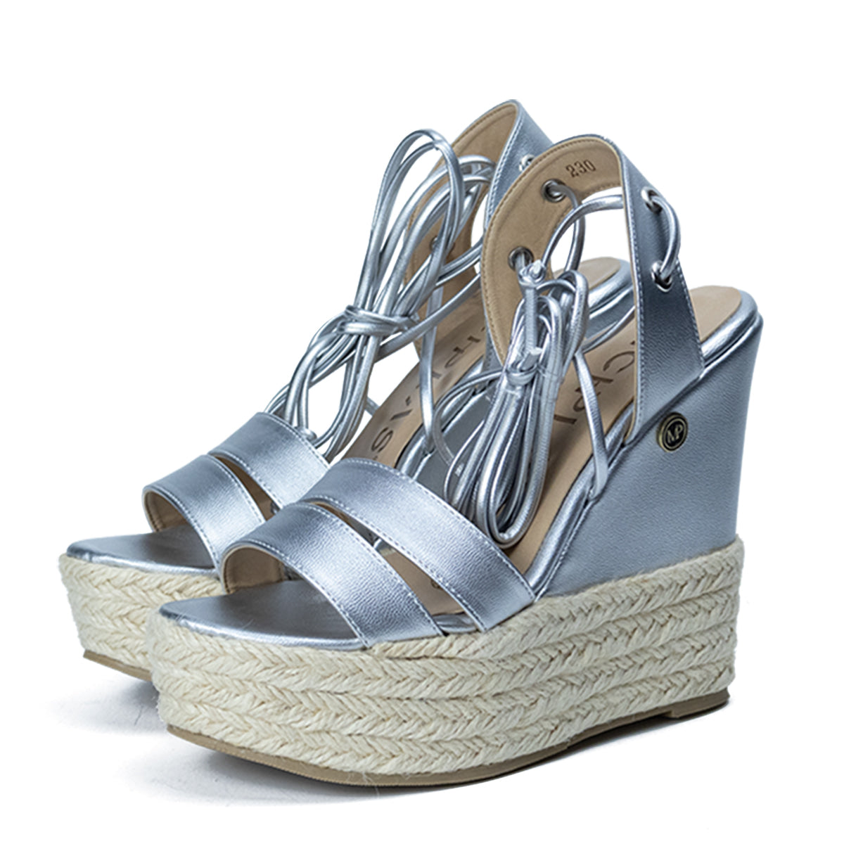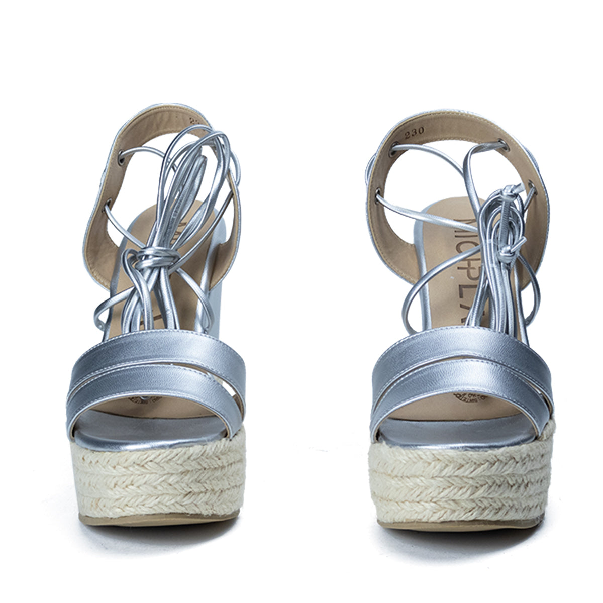 Alpargatas para Mujer con Yute Natural y Amarre de Cordón Color Plateado