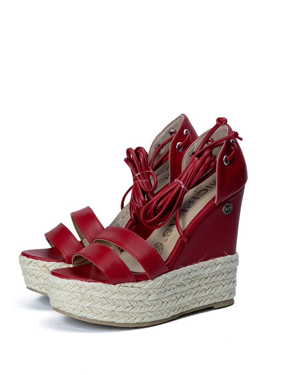 Descubre la elegancia elemental con las alpargatas 'Coruña Rojo'. Fabricadas con yute natural, una imponente altura de 13 cm y un encantador amarre de cordón, este calzado es perfecto para un público diverso.