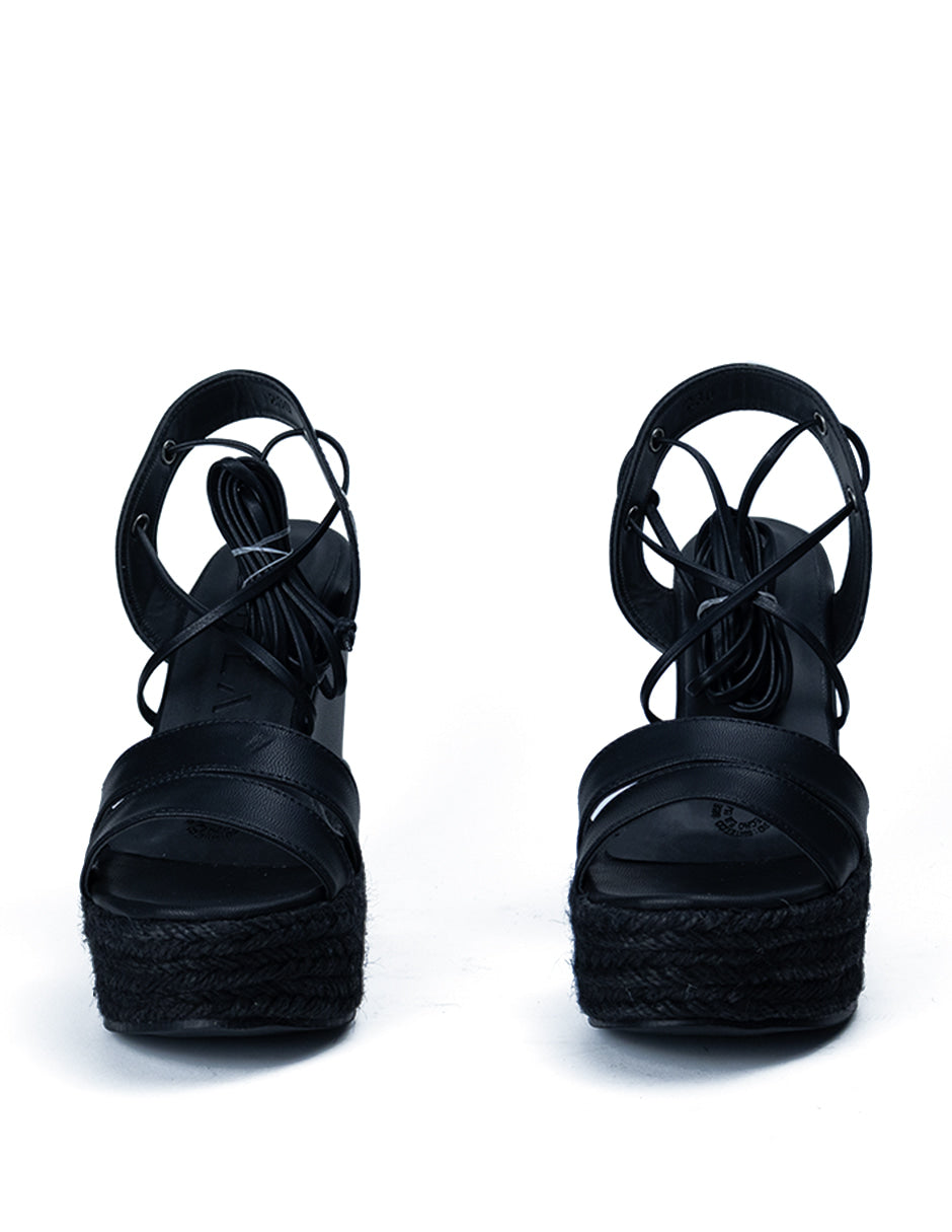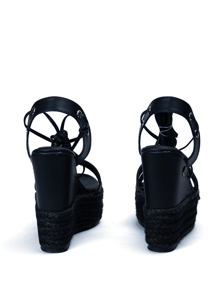 Alpargatas para Mujer con Yute Negro y Amarre de Cordón Color Negro