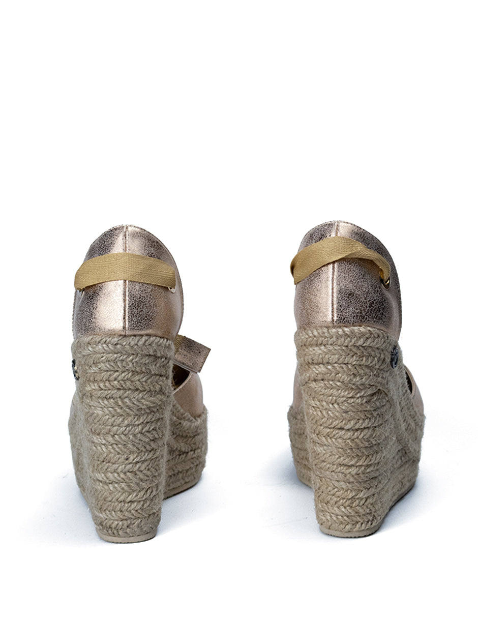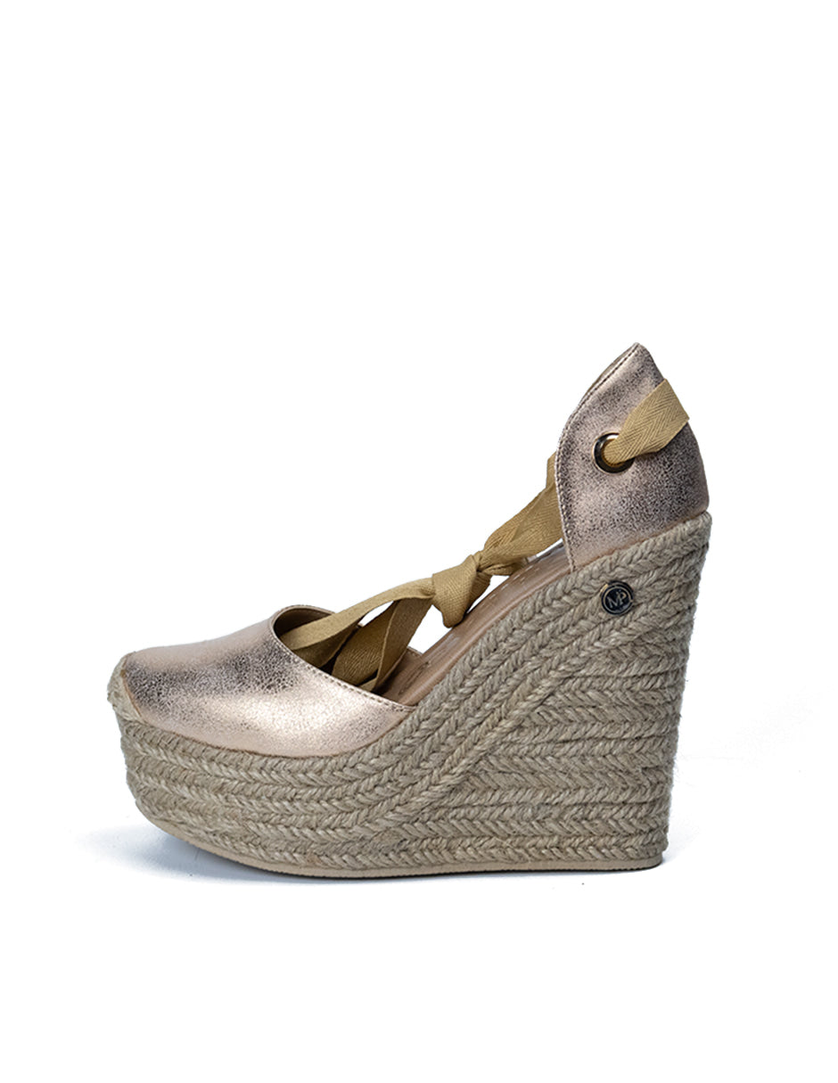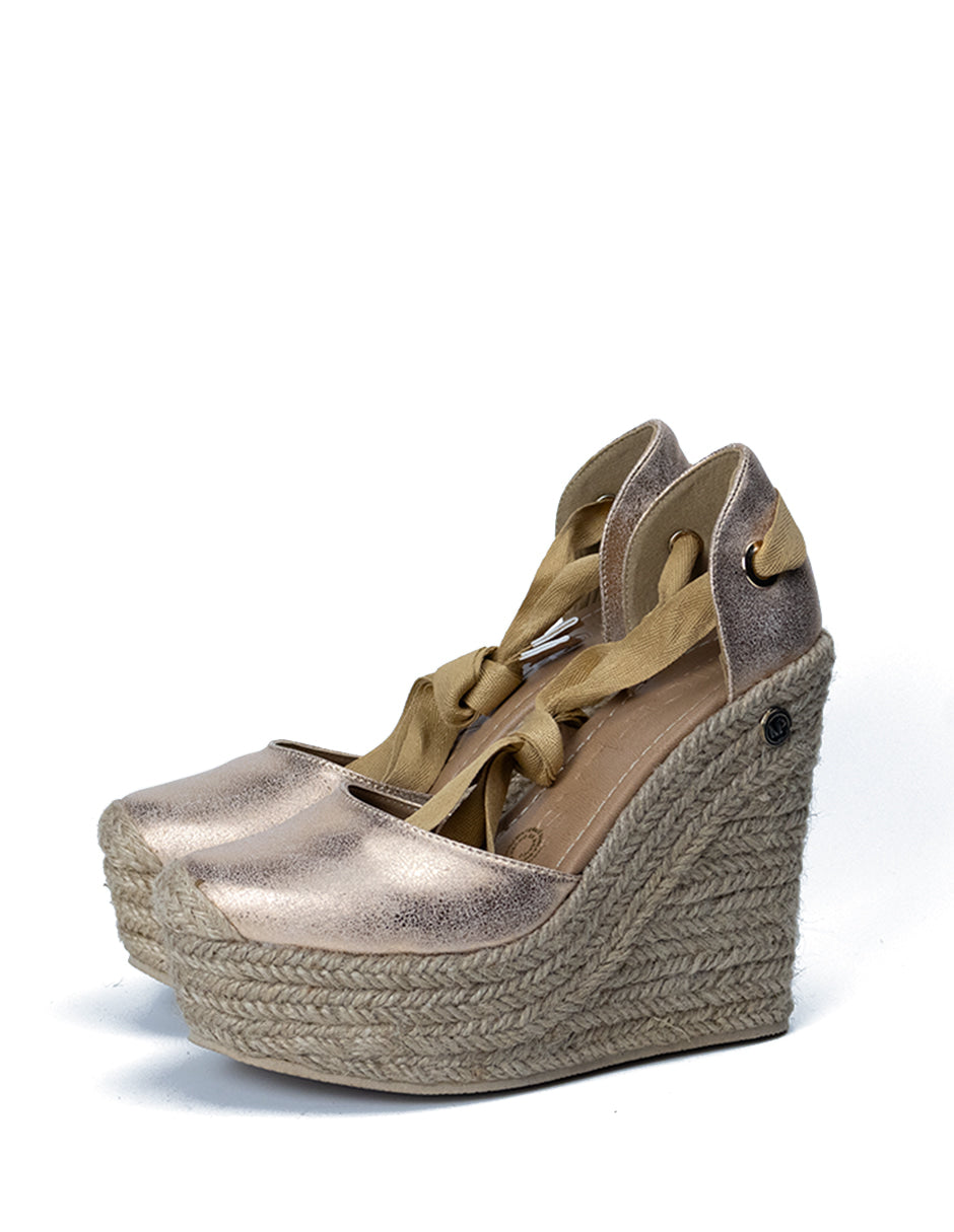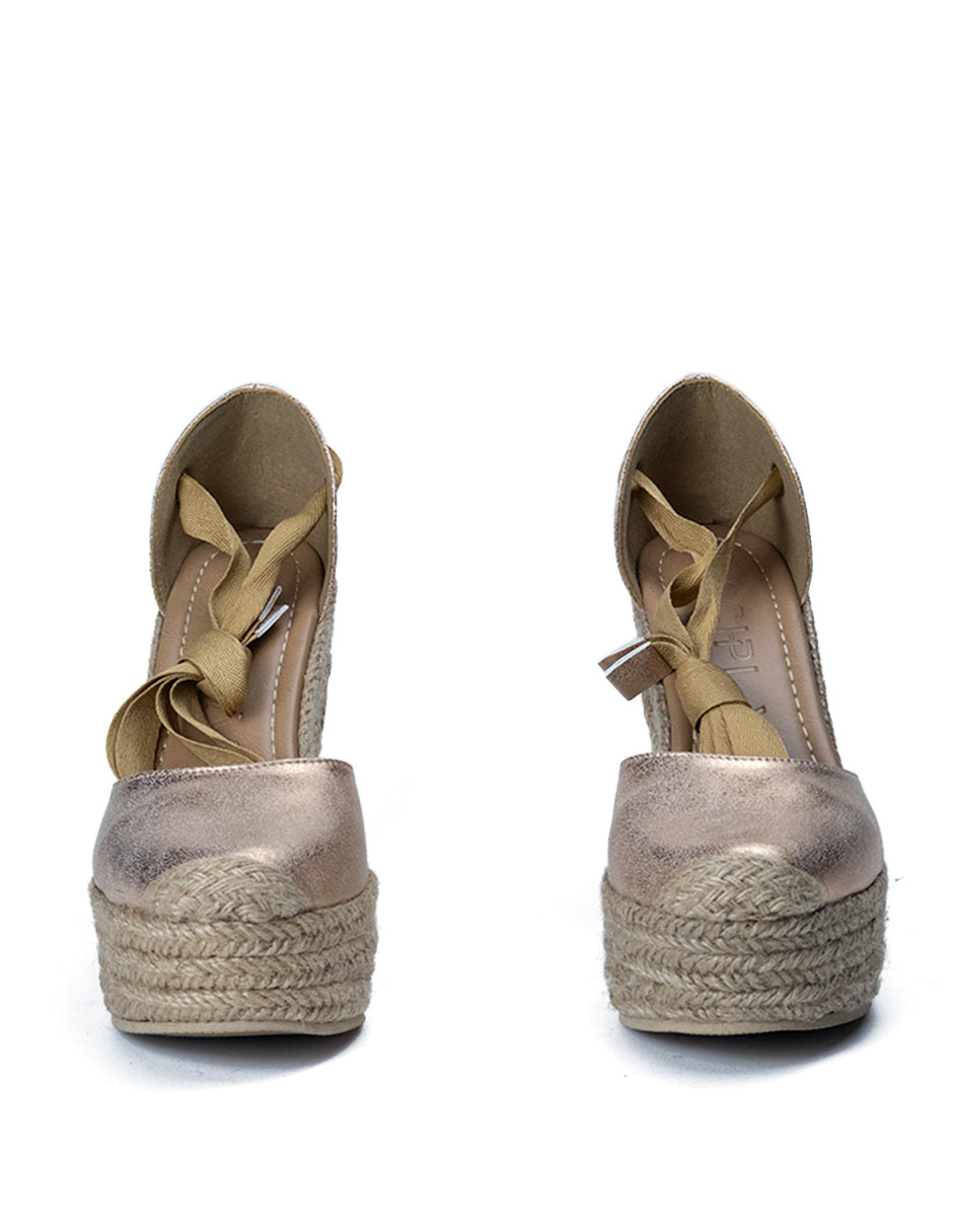 Descubre la elegancia y comodidad con las alpargatas 'Filadelfia Dorado Rosa'. Con un diseño cerrado, una altura de 13 cm y encantadores listones, este calzado es ideal para un público diverso.