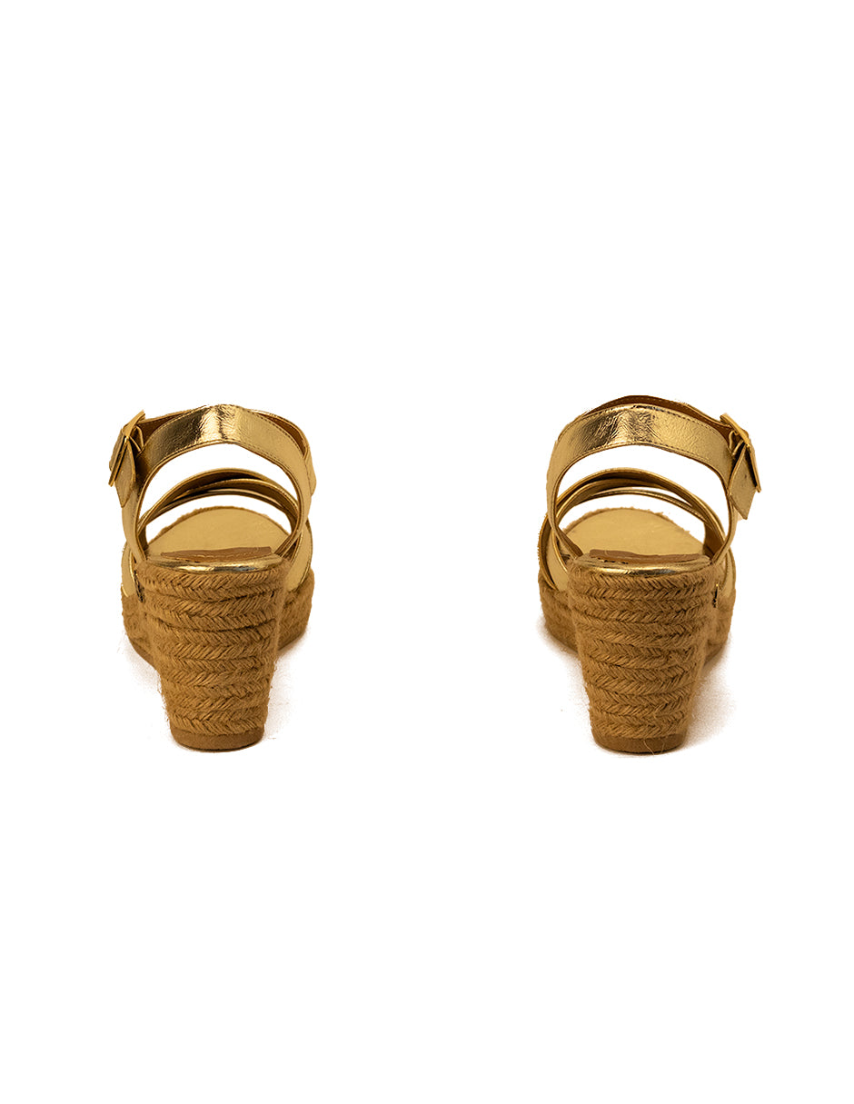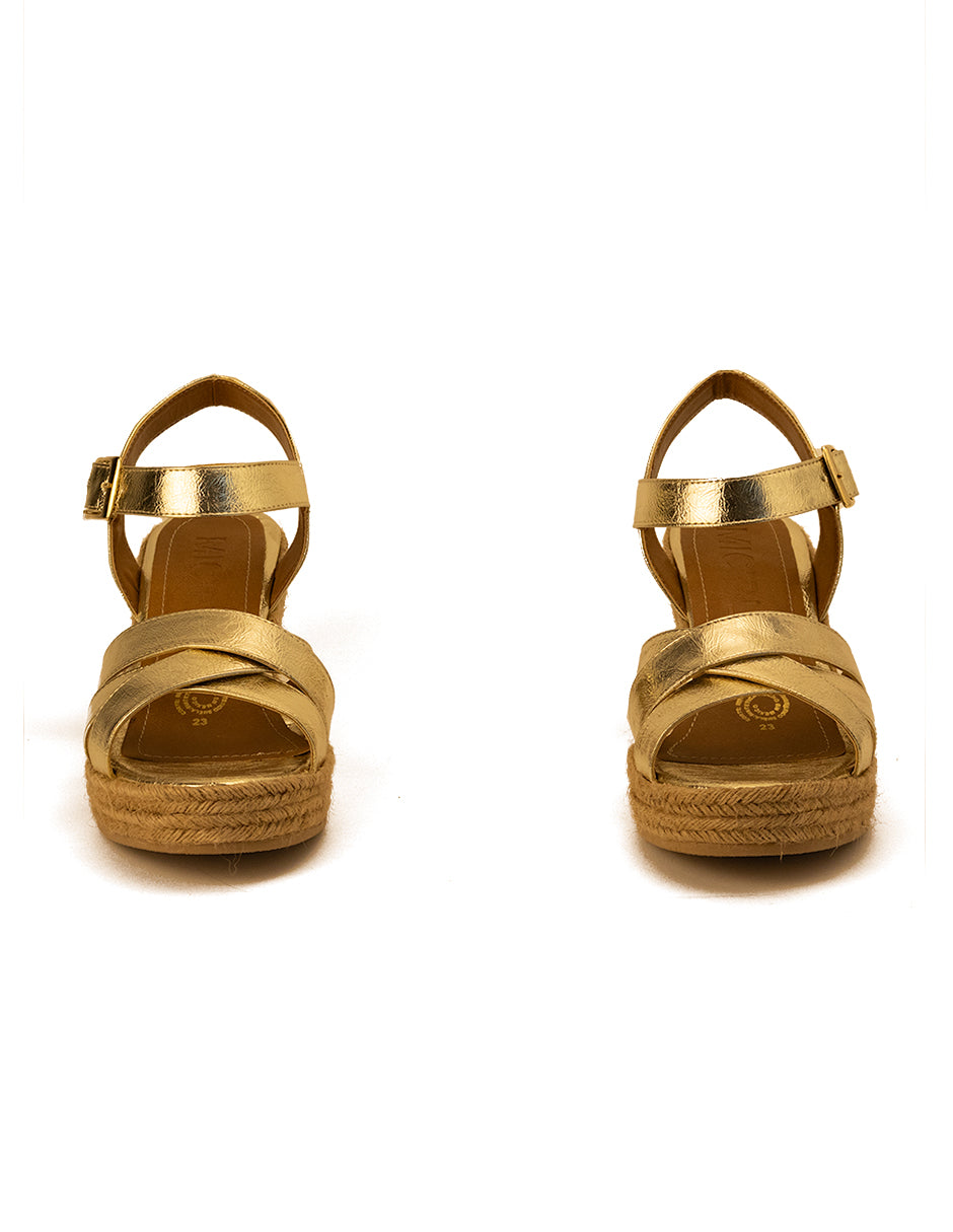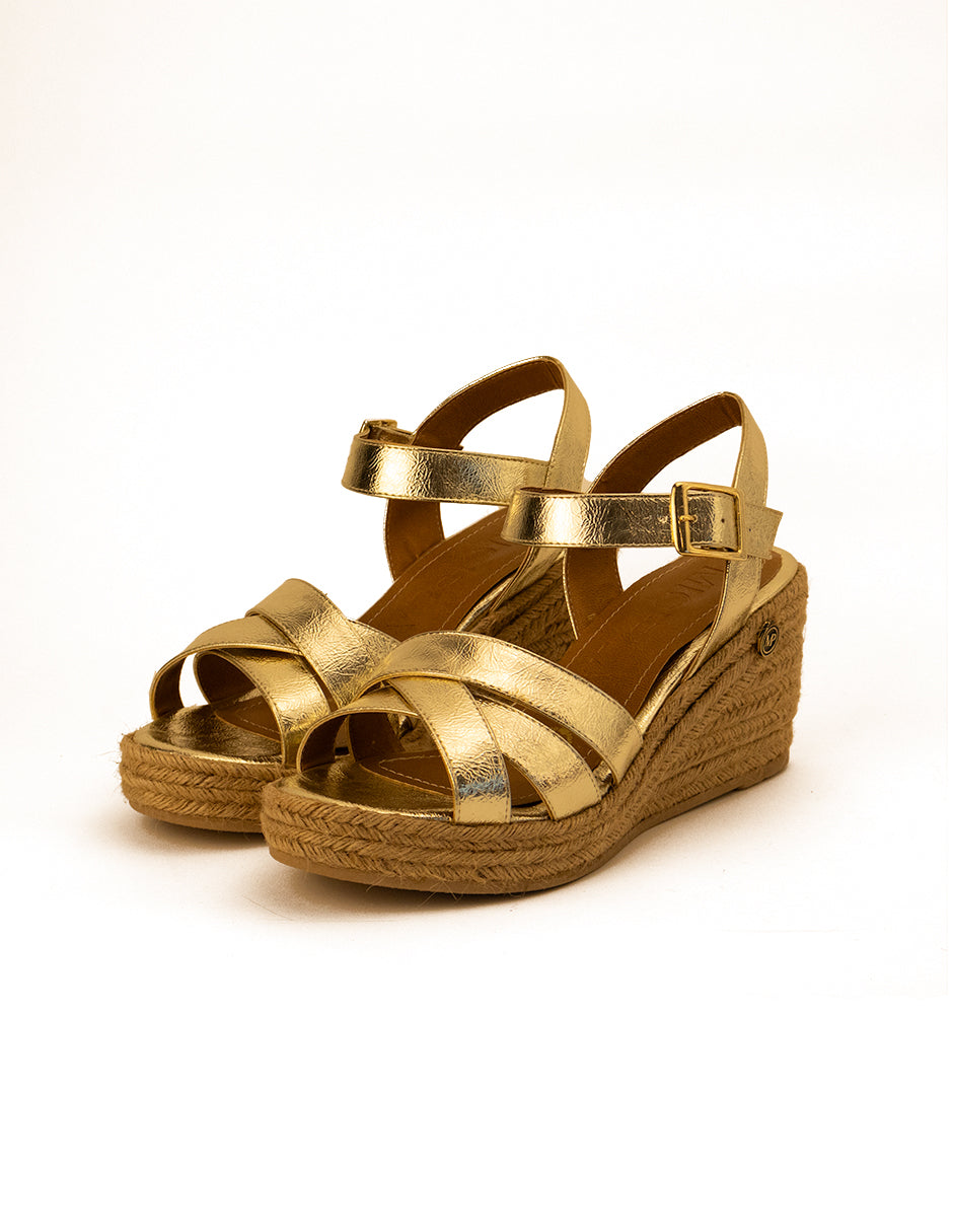 Esta alpargata de 8 cm. destaca por su estilo veraniego y elegante. Su tono dorado la convierte en un calzado versátil que puede combinarse fácilmente con diversos atuendos. Es perfecta tanto para ocasiones informales como semi-formales.