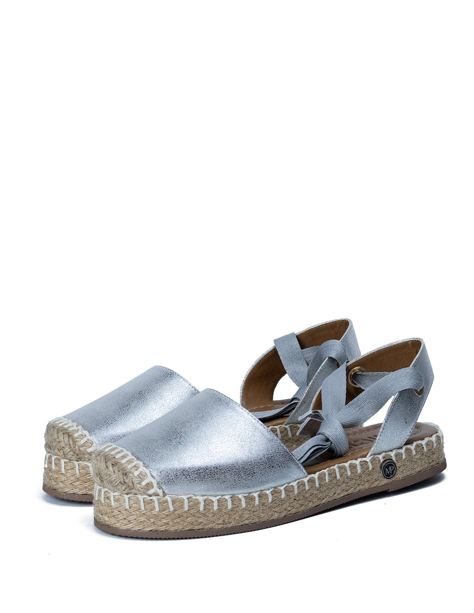 Elegancia en Alpargatas Plateado Craquel con Yute Natural