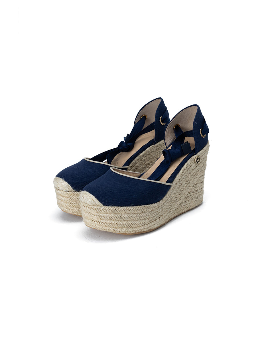 Descubre la elegancia y comodidad con las alpargatas 'Medellín Azul Marino'. Con un diseño cerrado, una altura de 10 cm y encantadores listones, este calzado es ideal para un público diverso.