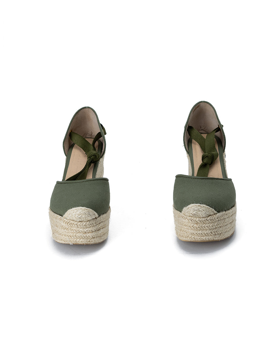 Descubre la elegancia y comodidad con las alpargatas 'Medellín Verde Olivo'. Con un diseño cerrado, una altura de 10 cm y encantadores listones, este calzado es ideal para un público diverso.