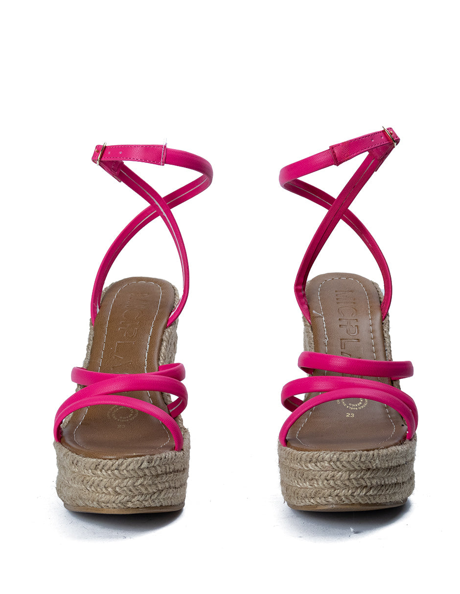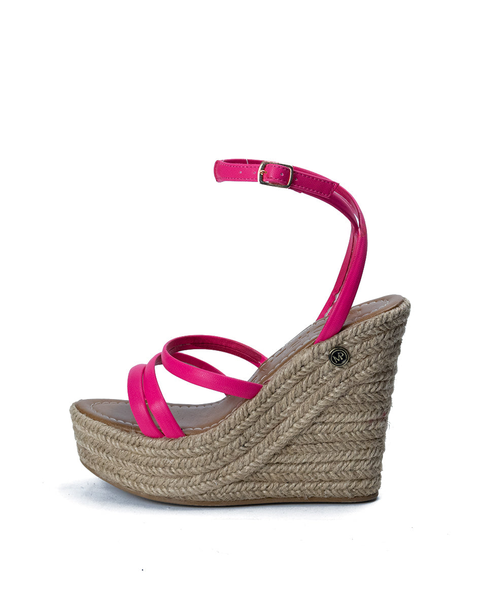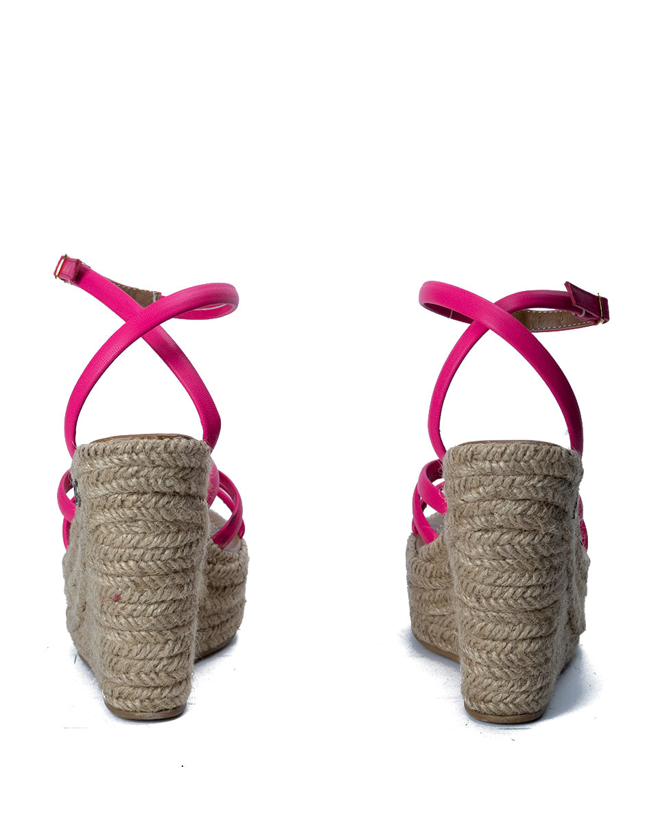 Alpargata Mujer Plataforma Yute Natural Tiras Color Fucsia