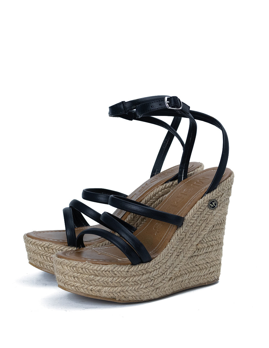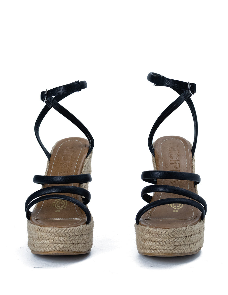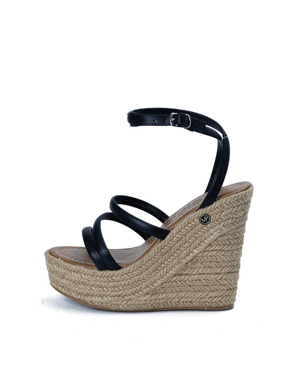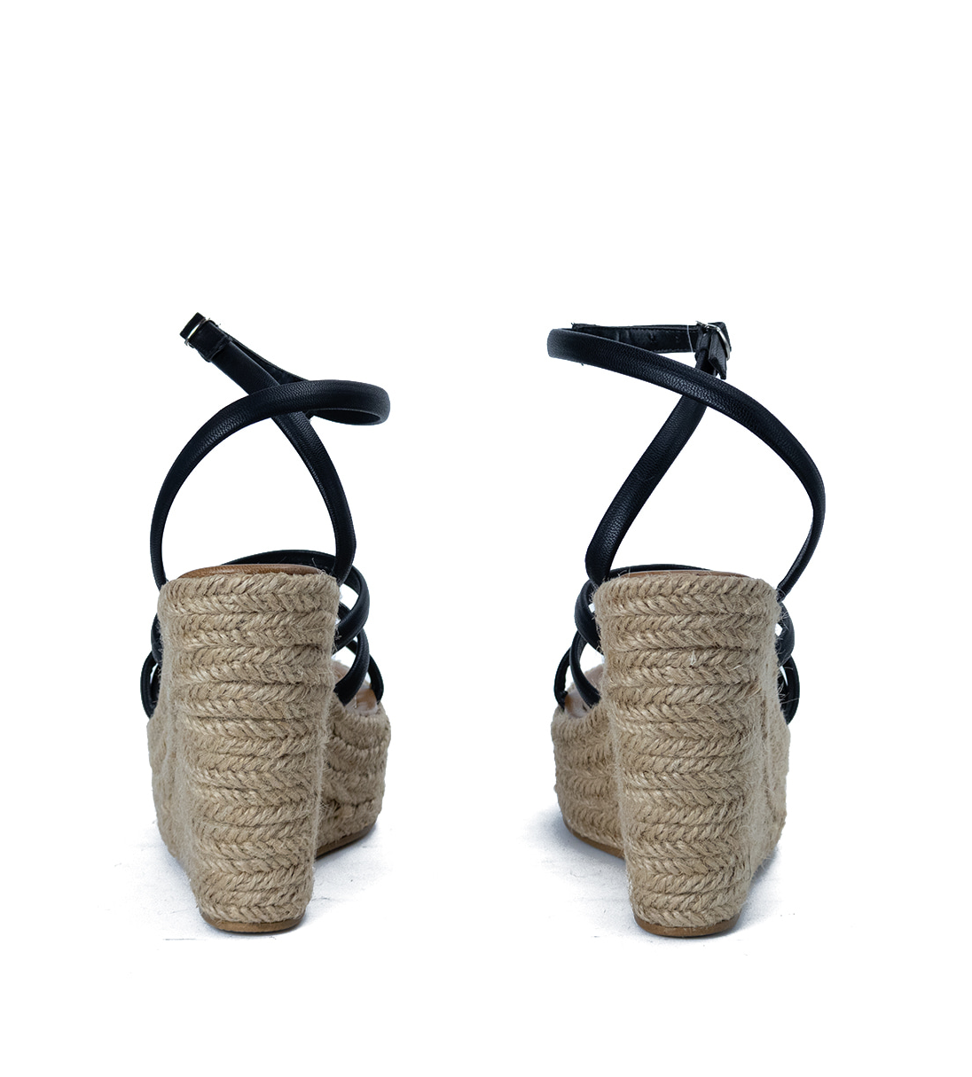 Alpargata Mujer Plataforma Yute Natural Tiras Color Negro