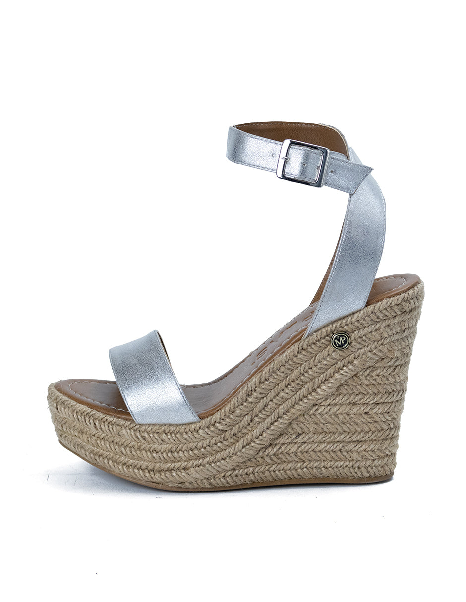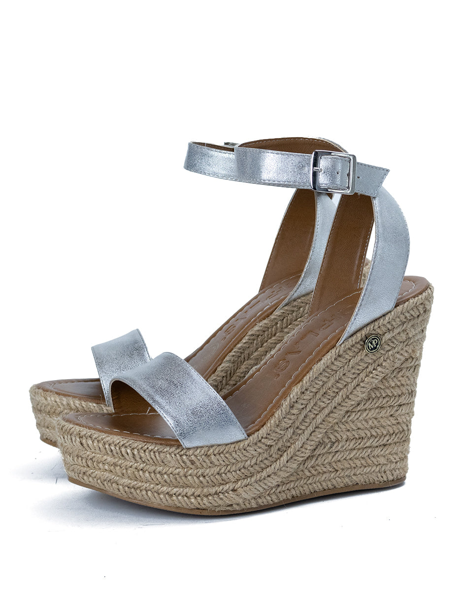 Alpargata para Mujer Yute Natural Abierta Correa Color Plateado