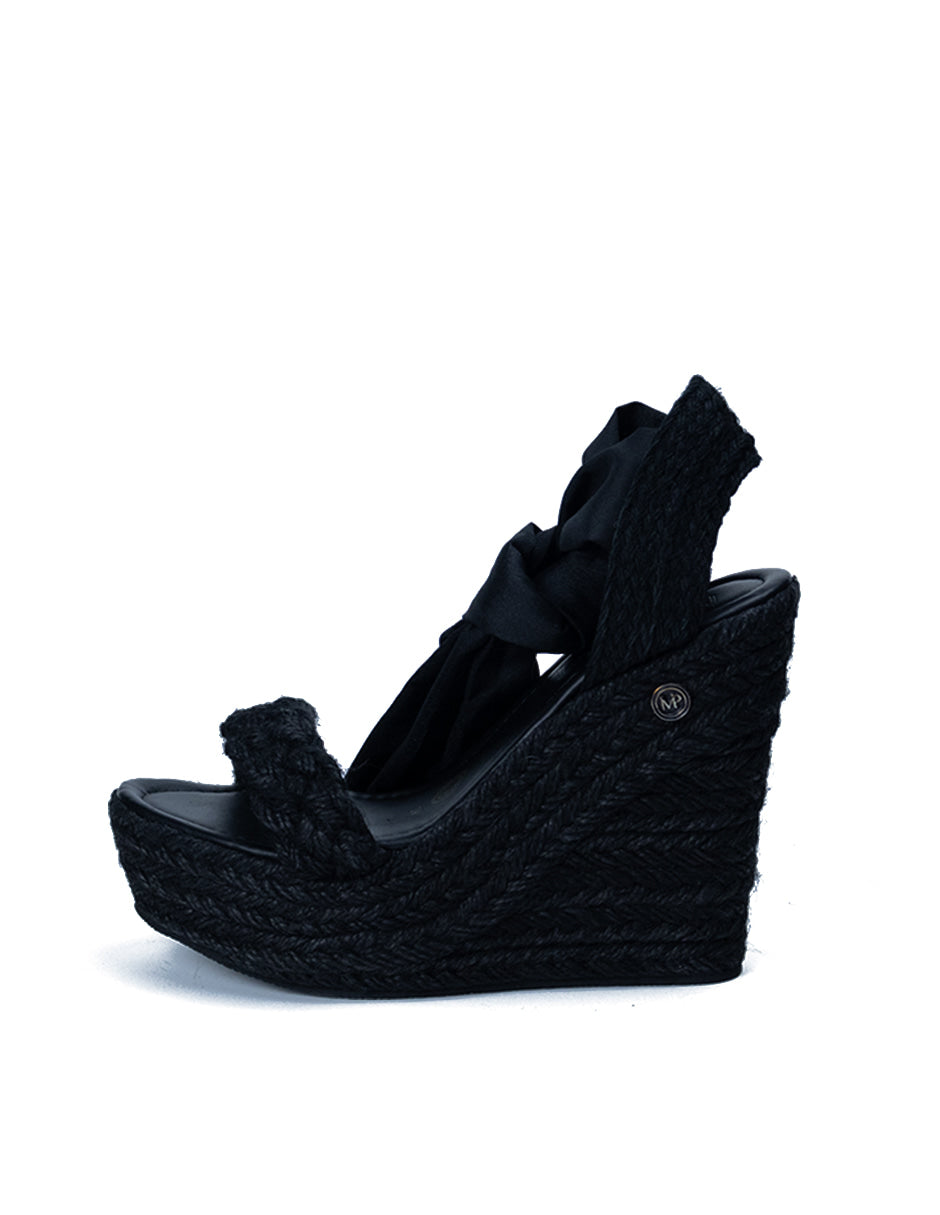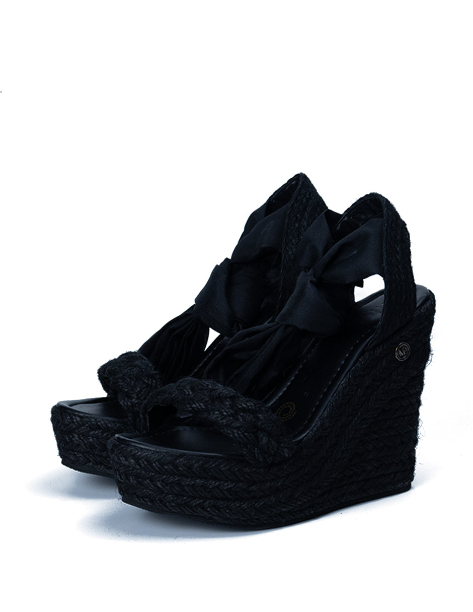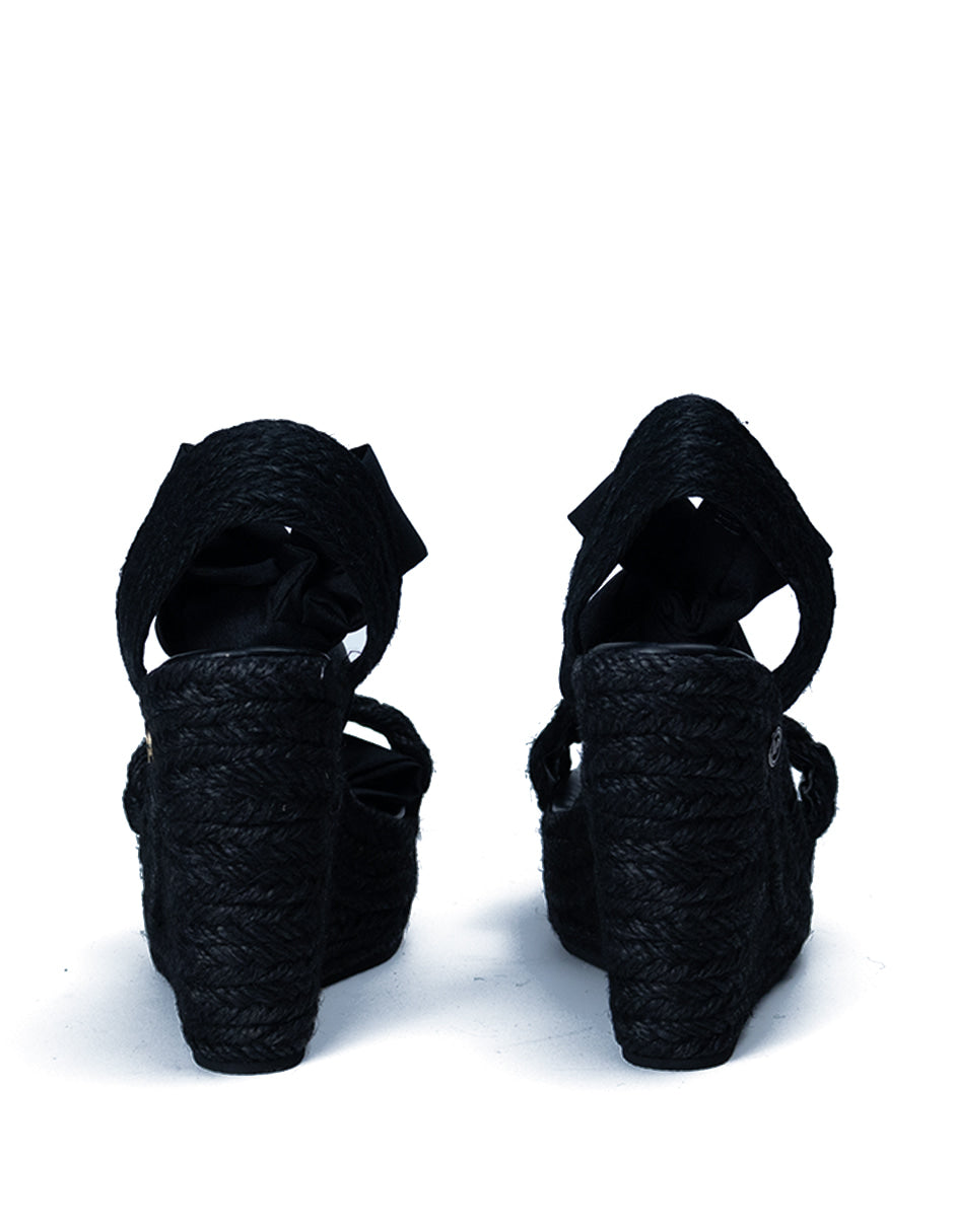 Alpargata para Mujer Yute Negro Trenzado Cordón Curry Negro Alta