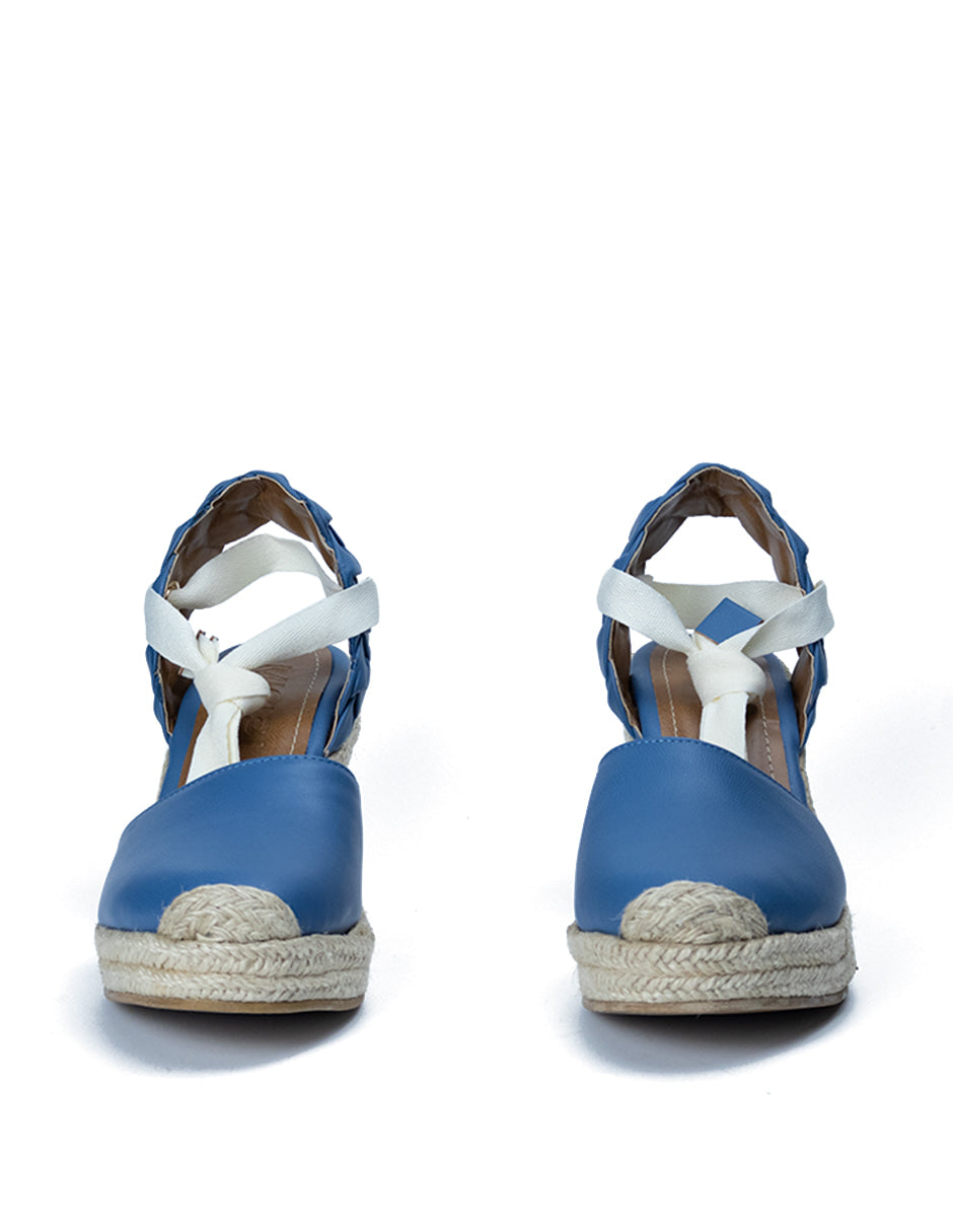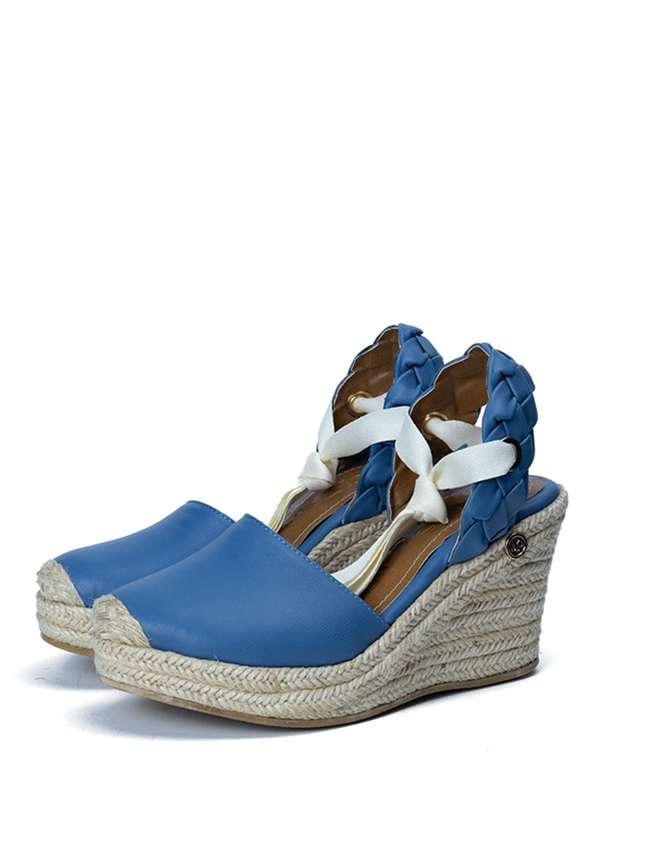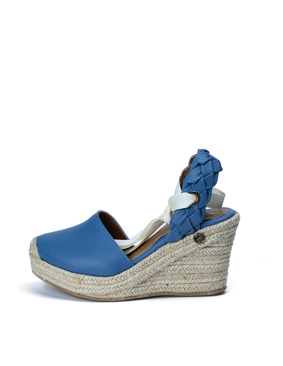Alpargata para Mujer Cerrada Azul Talonera Yute Natural