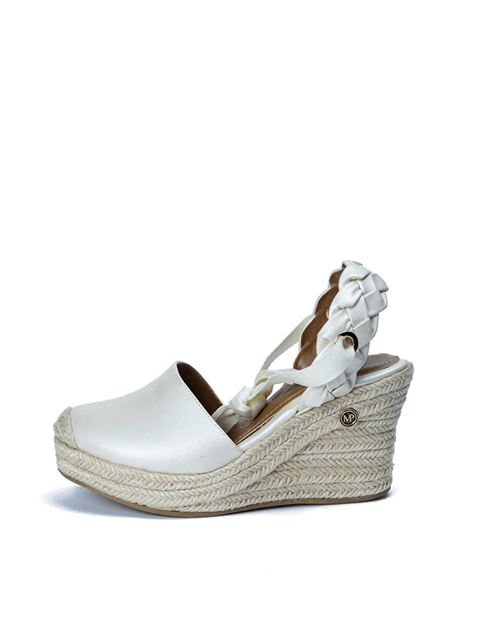 - Cierre con talonera trenzada y listón que añade un toque único y moderno.