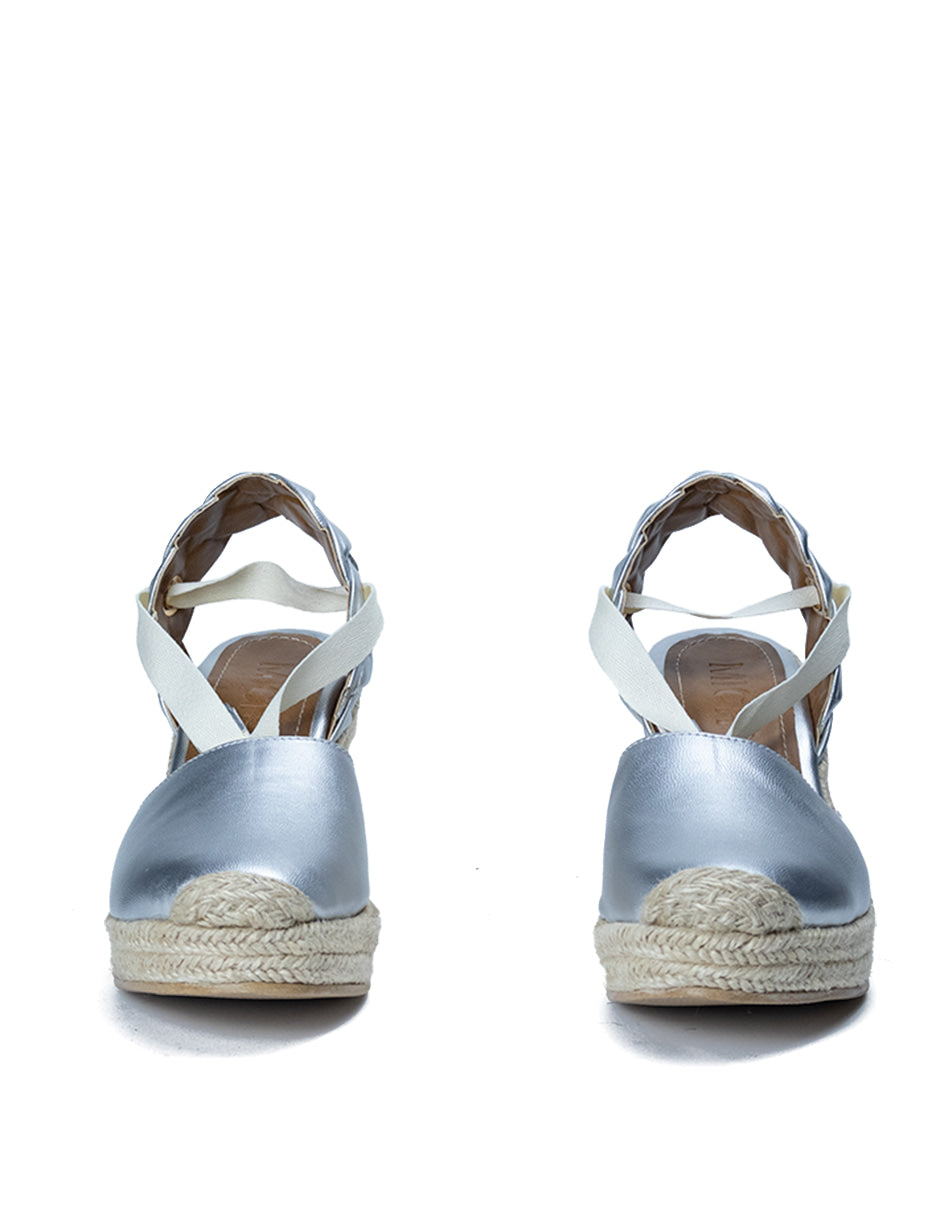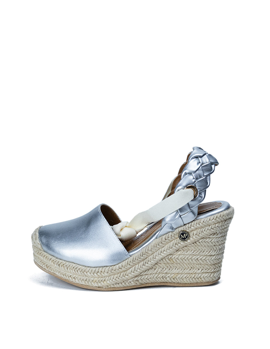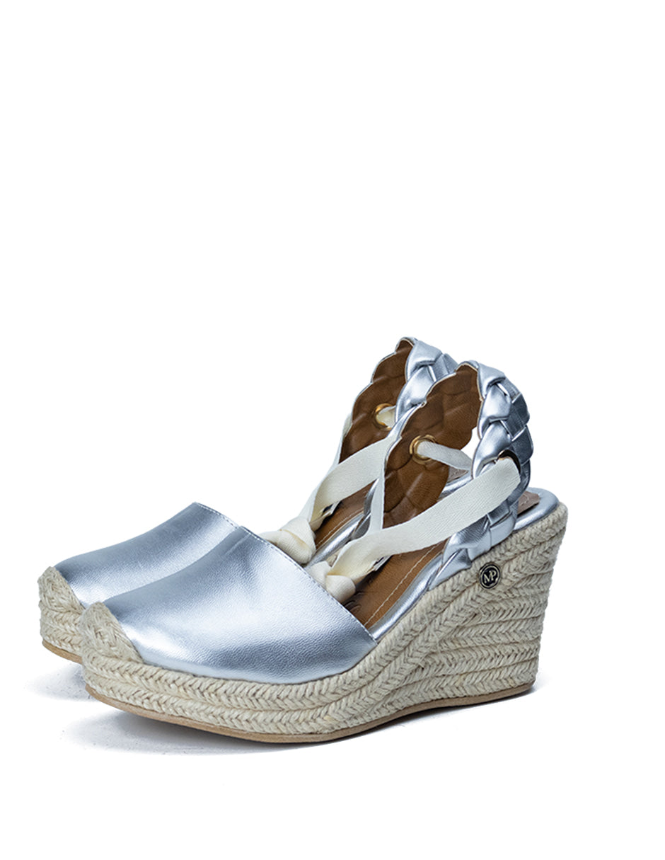 Alpargata para Mujer Cerrada Plateado Talonera Yute Natural