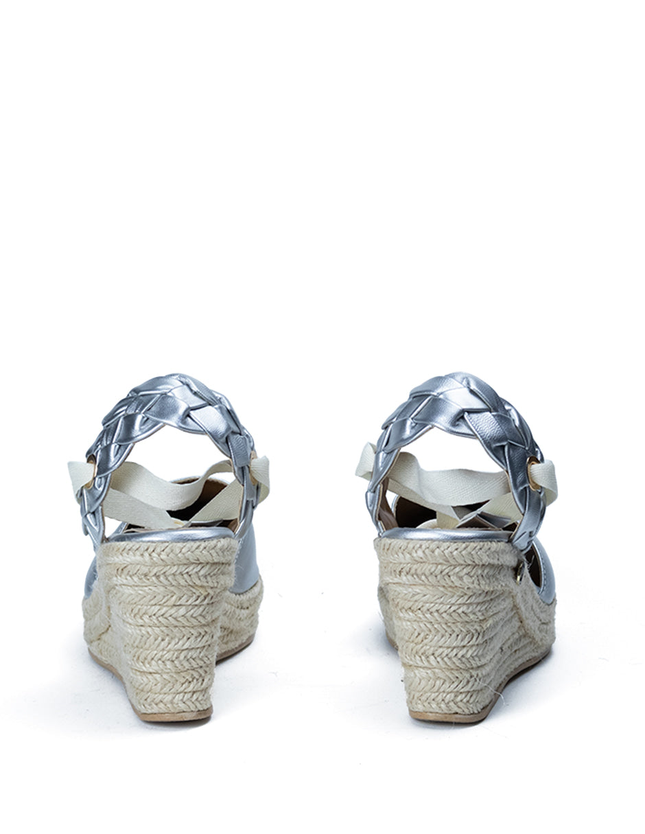 Descubre la combinación perfecta de elegancia y comodidad con las alpargatas 'Petra Plateado'. Con una altura de 9 cm, este calzado presenta un diseño bajo, cerrado con talonera trenzada y listón, ofreciendo estilo y versatilidad para un público diverso.