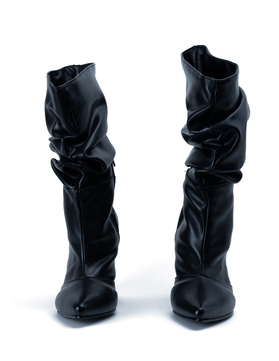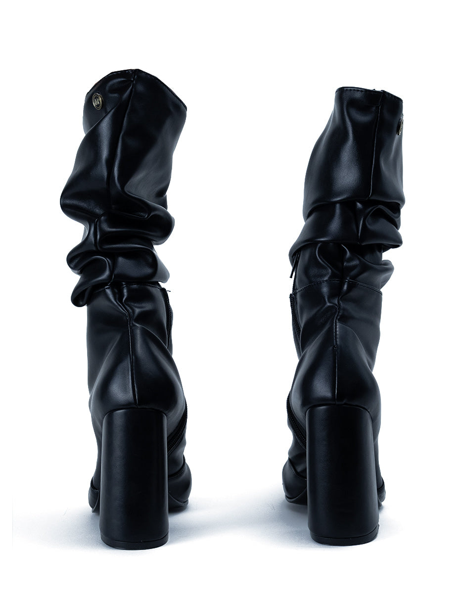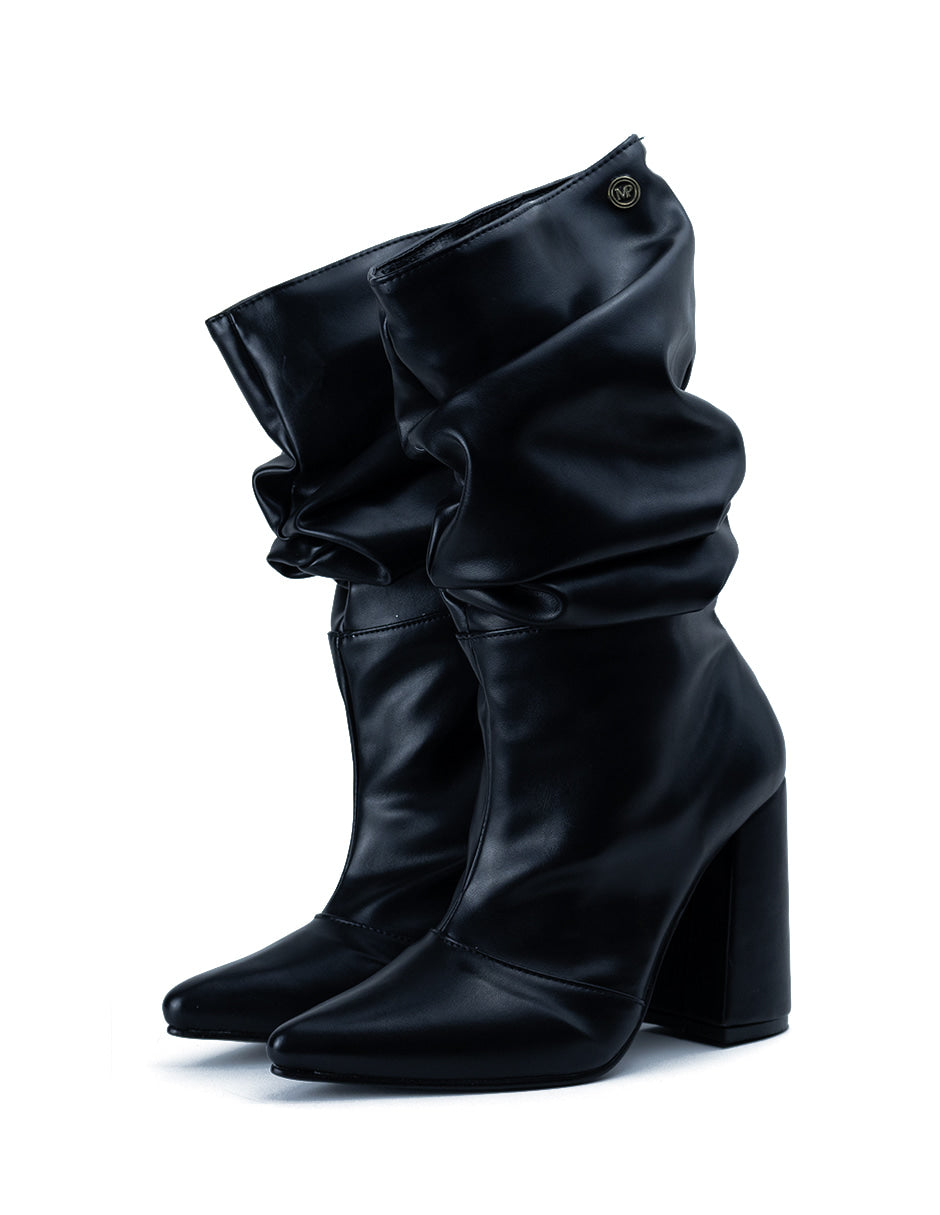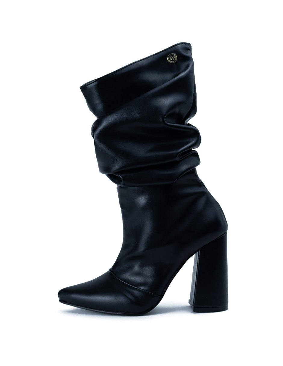 El estilo arrugado agrega un toque distintivo, haciendo que el 'Saint-Tropez Negro' sea la elección perfecta para quienes buscan un calzado moderno y versátil. Desde salidas casuales hasta eventos más formales, este botín complementará tu estilo de vida.