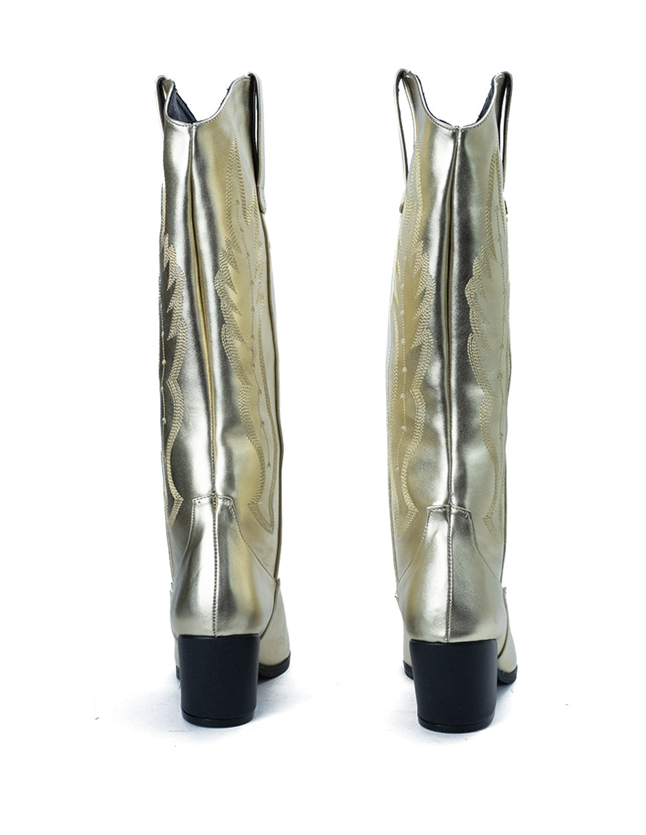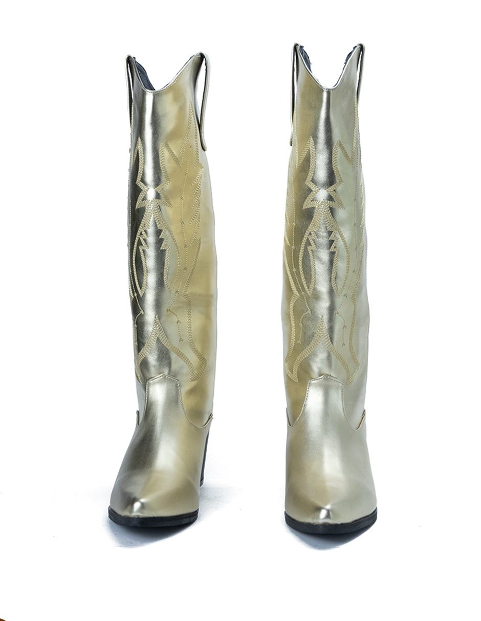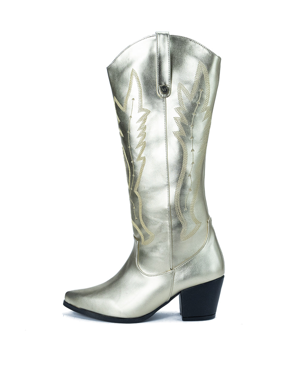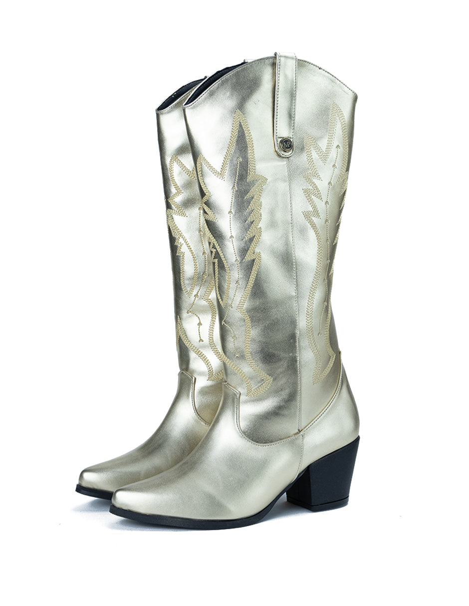 Bota para Mujer Sintética Bordada Vaquera Color Dorado Metálica