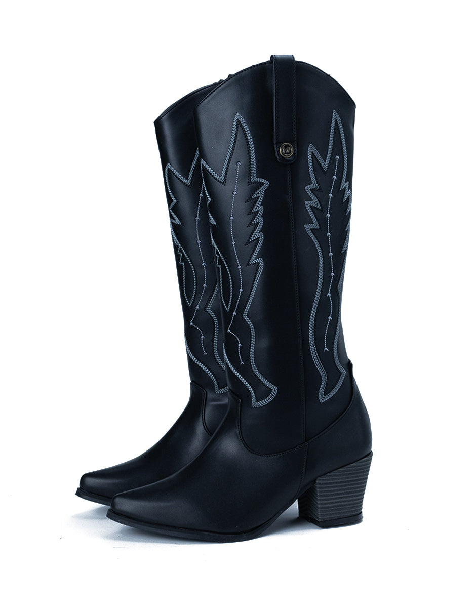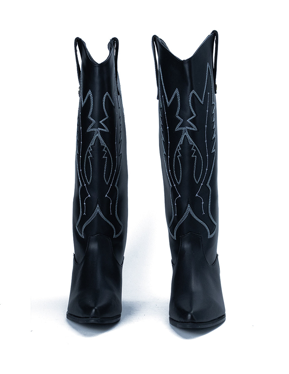 Bota para Mujer Sintética Bordada Vaquera Color Negro