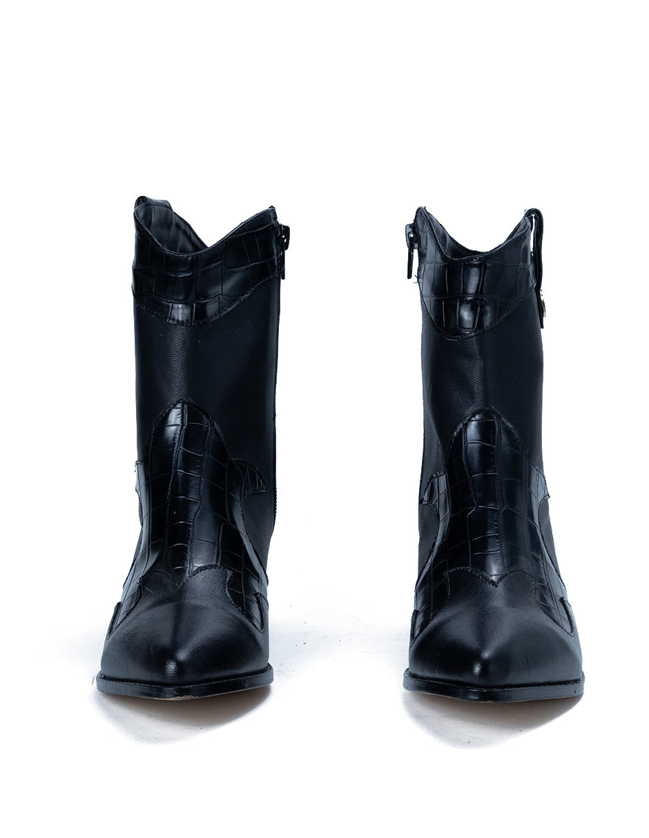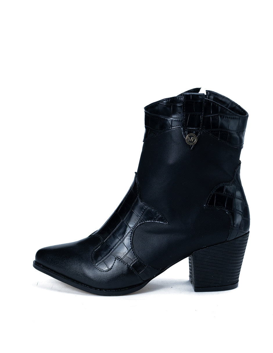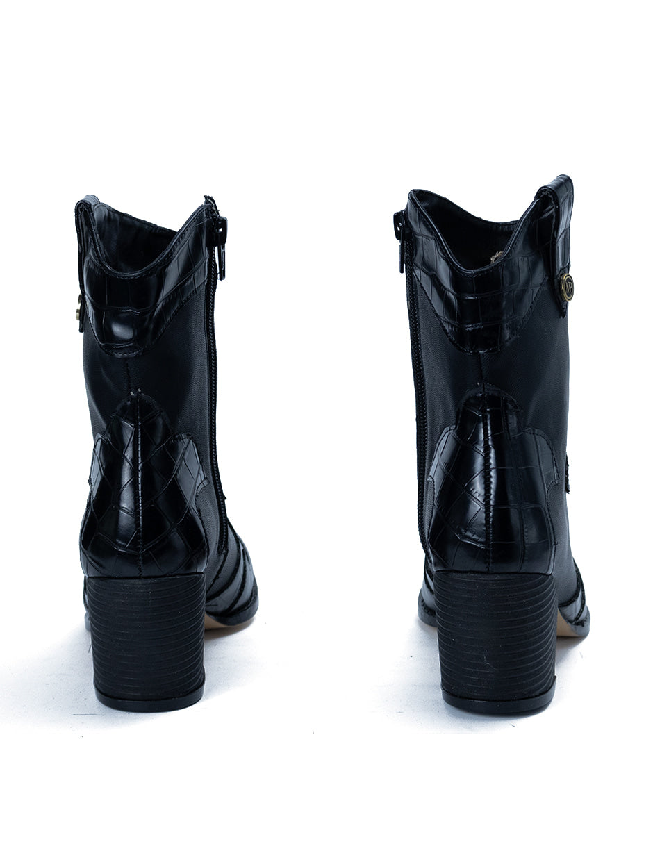Descubre la esencia del oeste con nuestros exclusivos botines 'Texas Negro'. Este diseño vaquero presenta un cautivador bordado y un tacón de 6.5 cm de altura, combinando a la perfección la moda moderna con el encanto tradicional del vaquero.