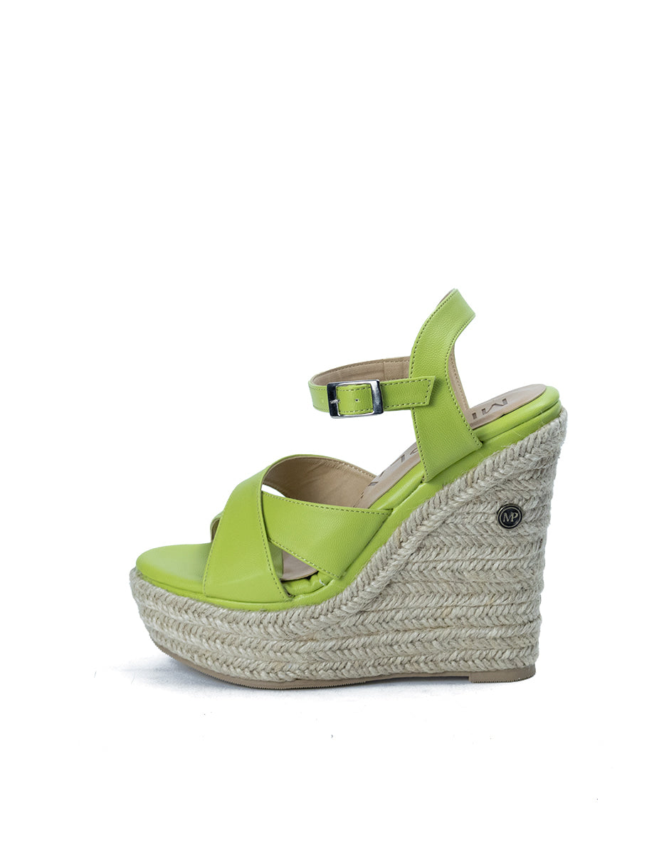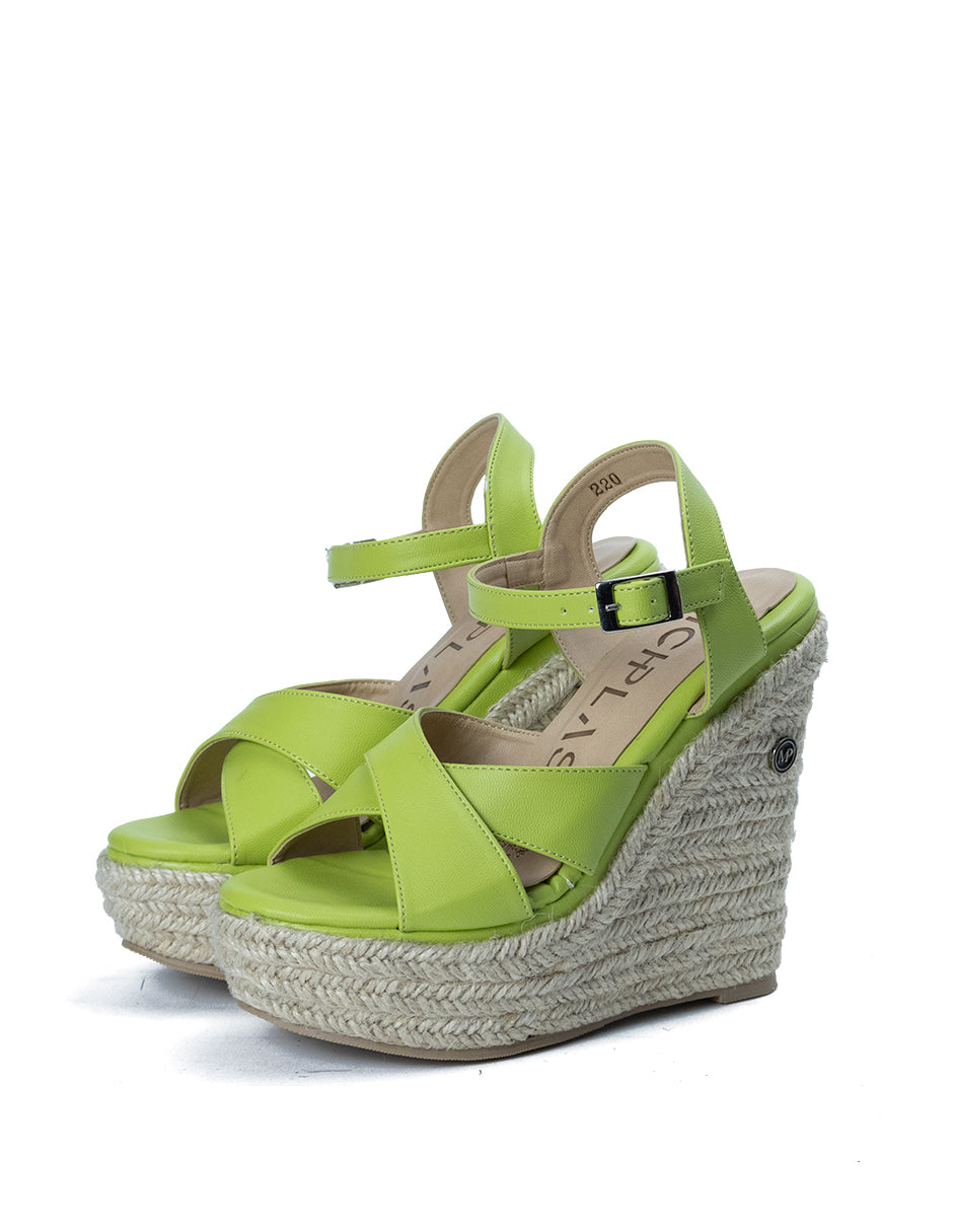 Alpargata para Mujer Color Verde Apio Abierta con Amarre de Pulsera