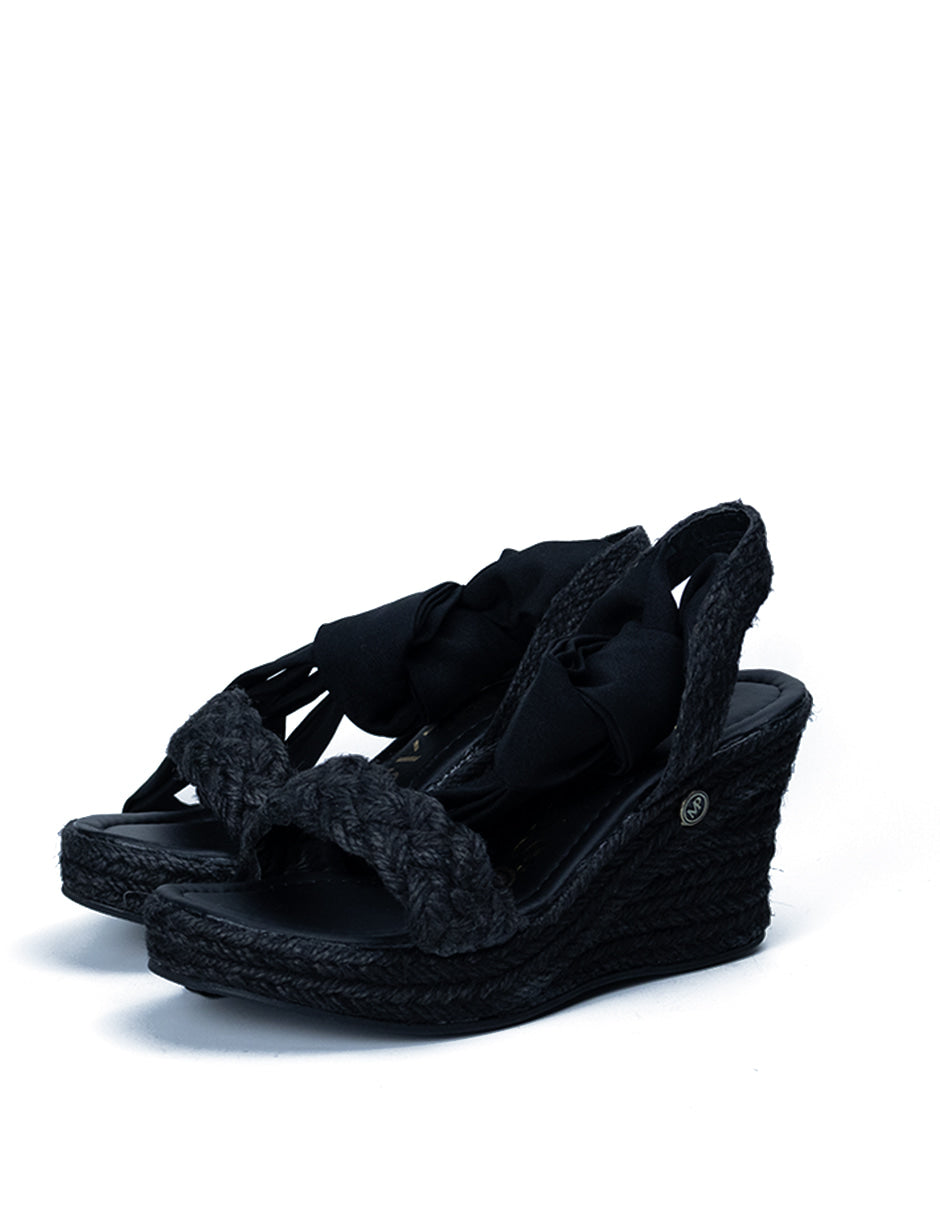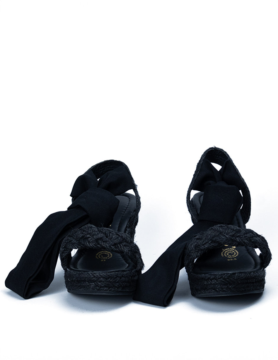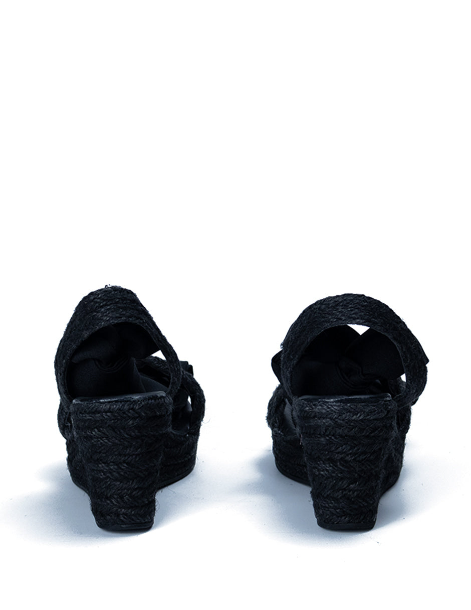 Alpargata para Mujer Yute Negro Trenzado y Cordón Curry Color Negro