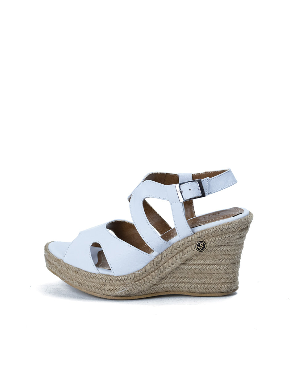 Alpargata para Mujer Sintético Abierta con Amarre de Broche Color Blanco