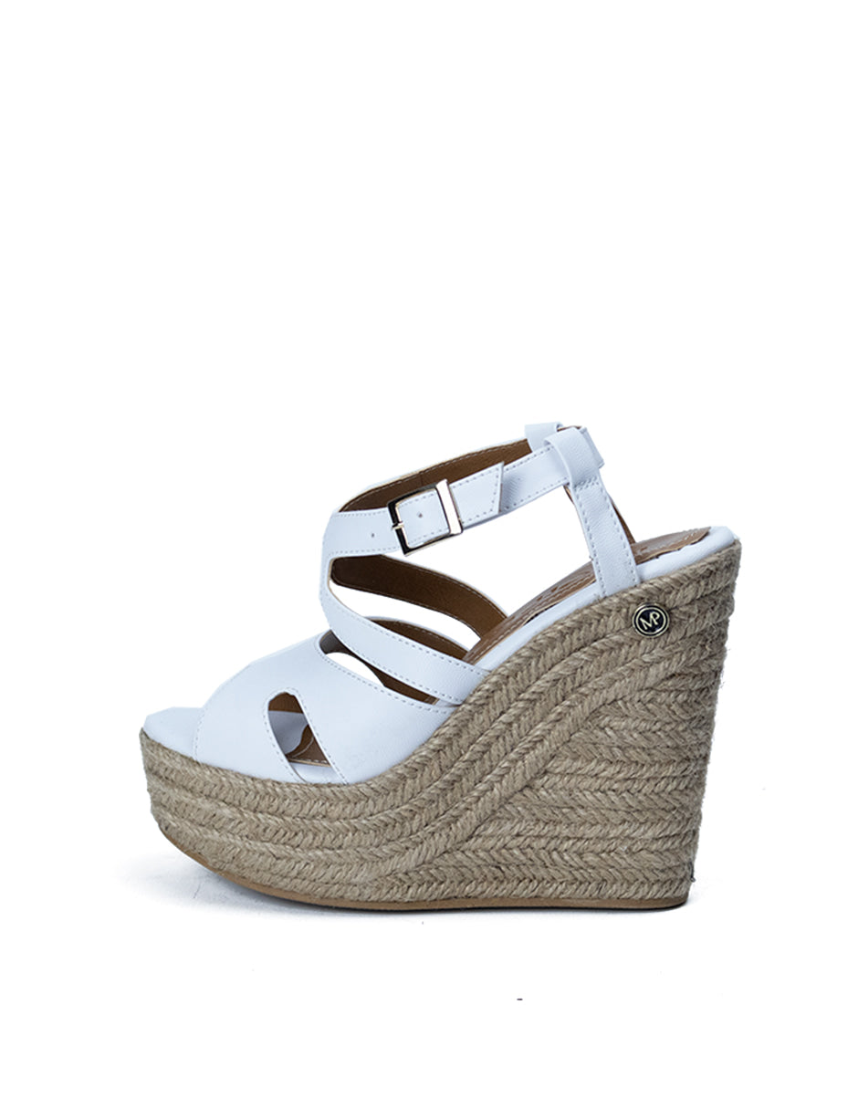 Alpargata para Mujer Sintético Abierta con Amarre de Broche Color Blanco