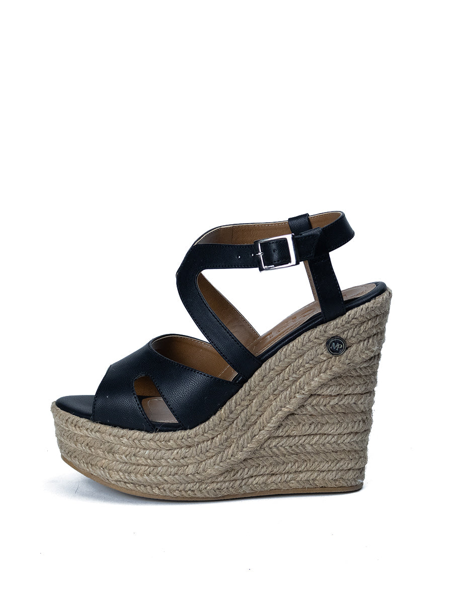 Alpargata para Mujer Sintético Abierta con Amarre de Broche Color Negro