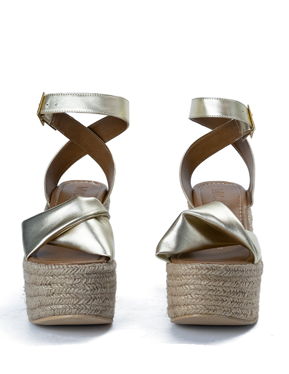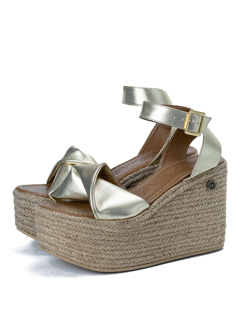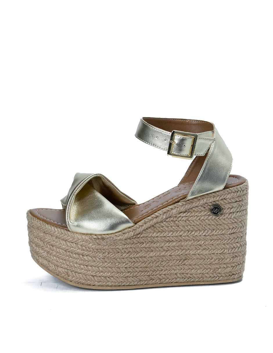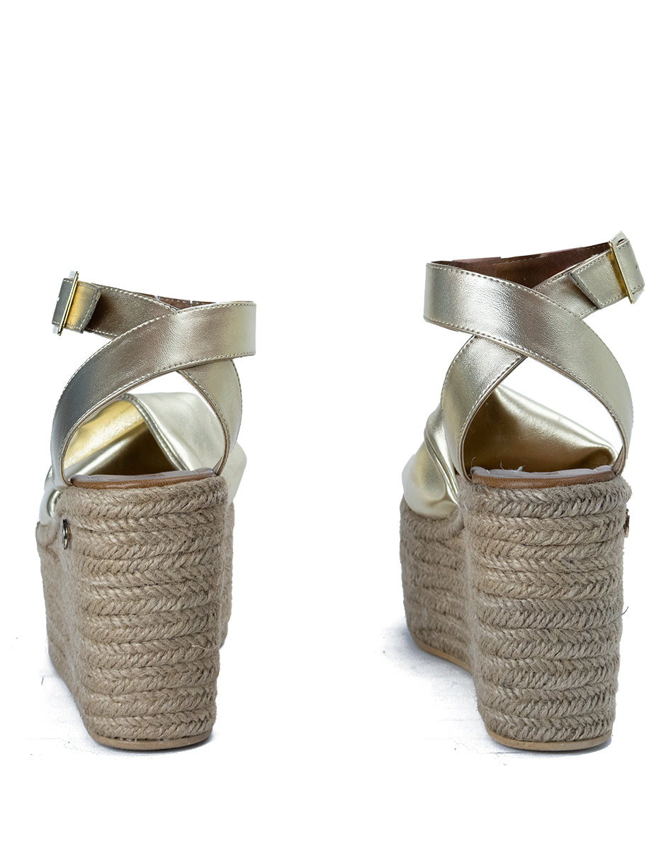Alpargata para Mujer Sintético Corrida con Agarradera de Correa, Yute Natural Color Dorado