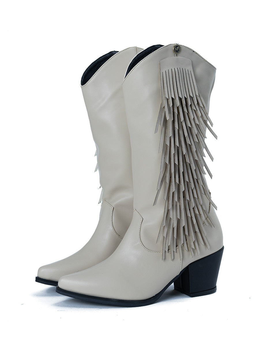 Bota para Mujer Sintética Con Diseño de Barbas y Tacón de Baquetilla Color Beige