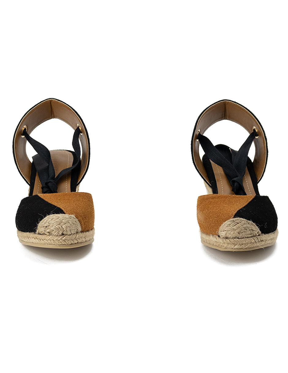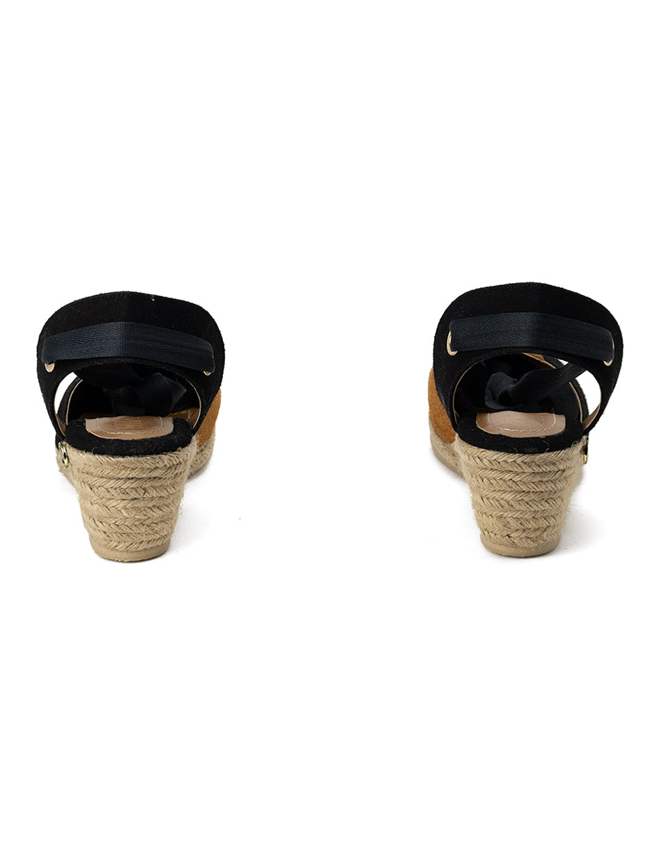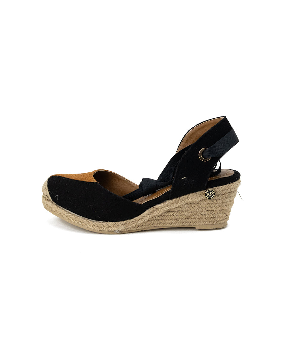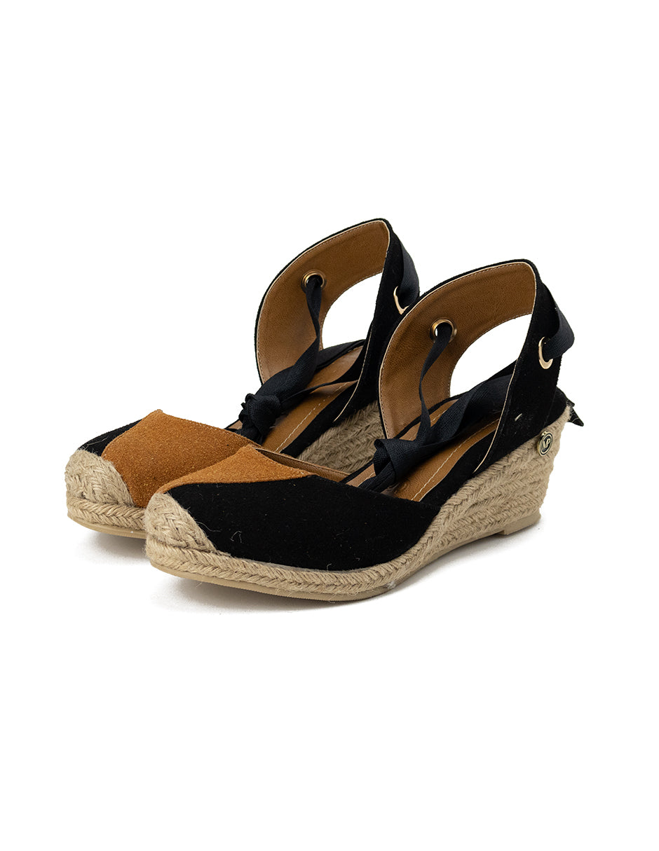 Esta alpargata de cuña con altura de 6 cm. destaca por su diseño elegante y práctico, ideal para ocasiones tanto casuales como semiformales. El calzado combina varios materiales para ofrecer confort y estilo. La base presenta una suela hecha de esparto trenzado, un material tradicional que proporciona un toque artesanal y veraniego al diseño. La altura de la cuña es moderada, lo que añade elegancia sin comprometer la comodidad al caminar.